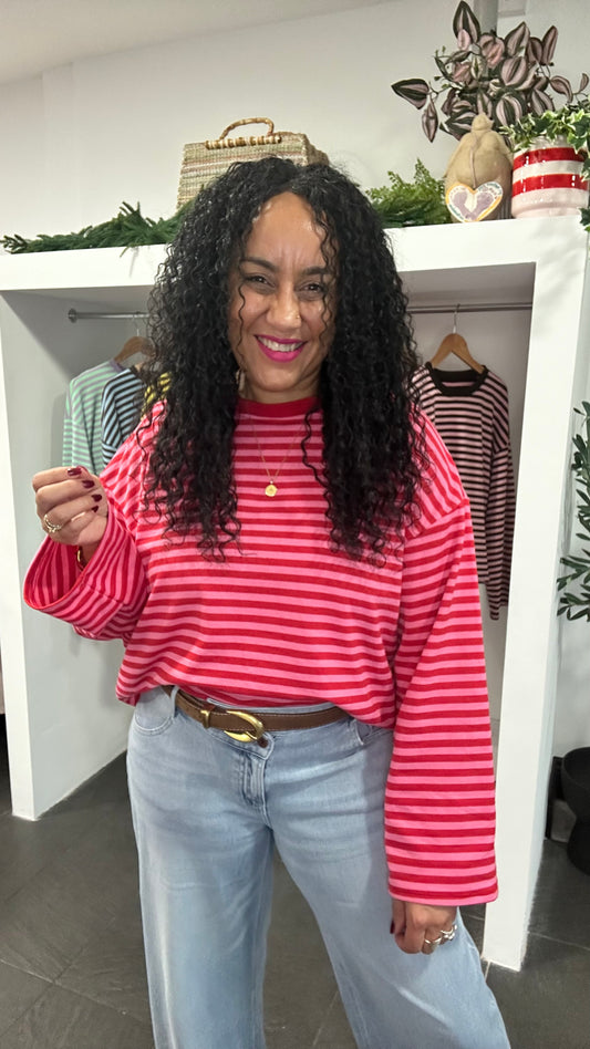 BELLE STRIPE TOP WITH WIDE SLEEVES RED & PINK *New
