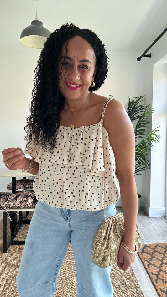 POLKA DOT COLD SHOULDER TOP CREAM *New