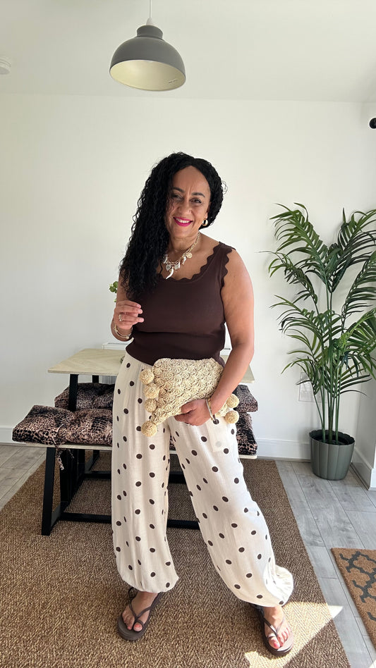 POLKA DOT CUFFED BALLON TROUSERS CREAM *New