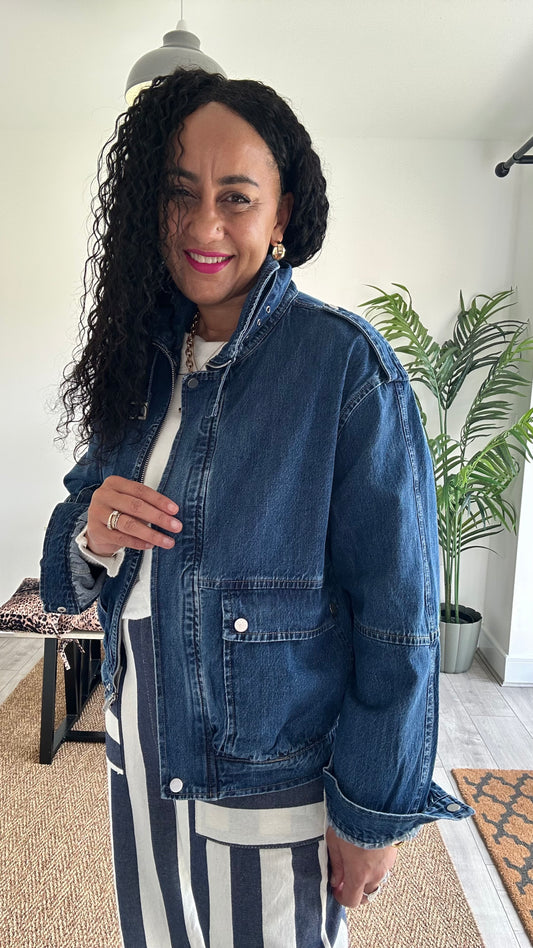 DENIM FUNNEL NECK BOMBER JACKET *New