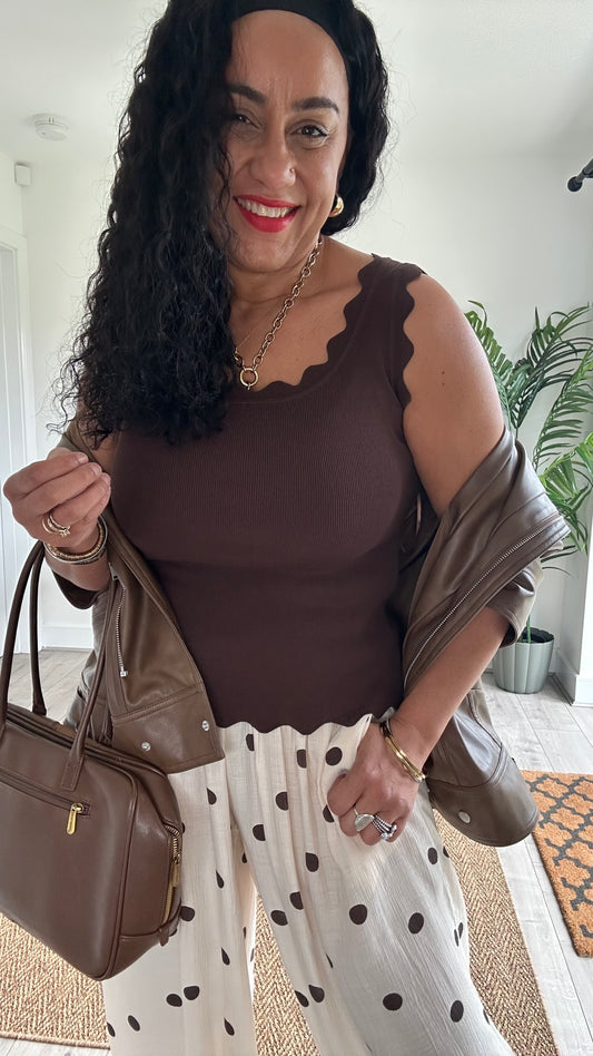 SCALLOPED VEST BROWN *New