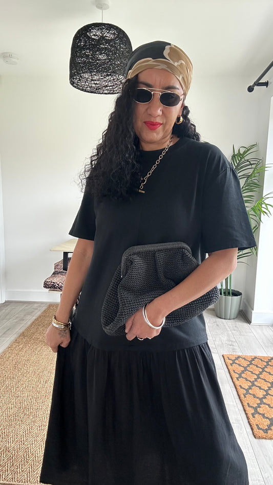 BENJI OVERSIZED COTTON MIDI DRESS BLACK *New