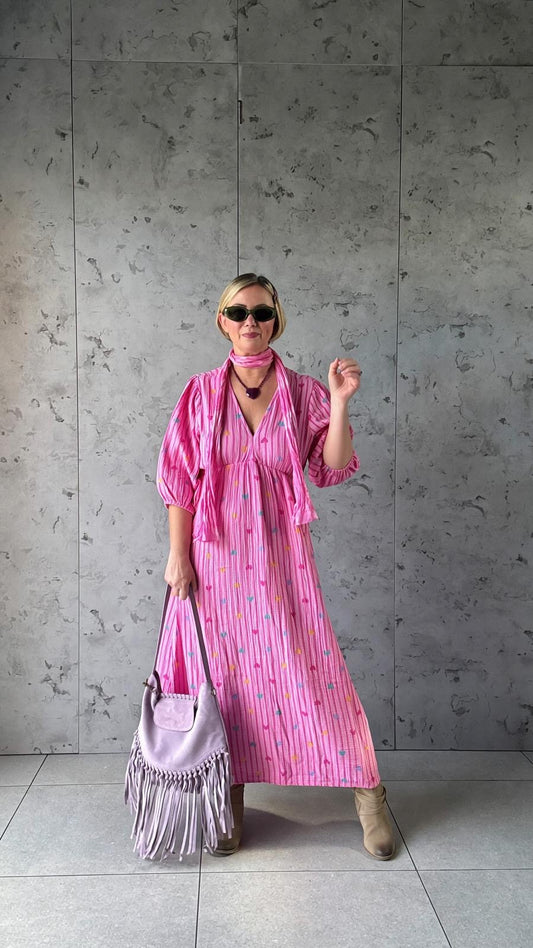 SEVE HARIBO HEART & STRIPE DRESS PINK *New