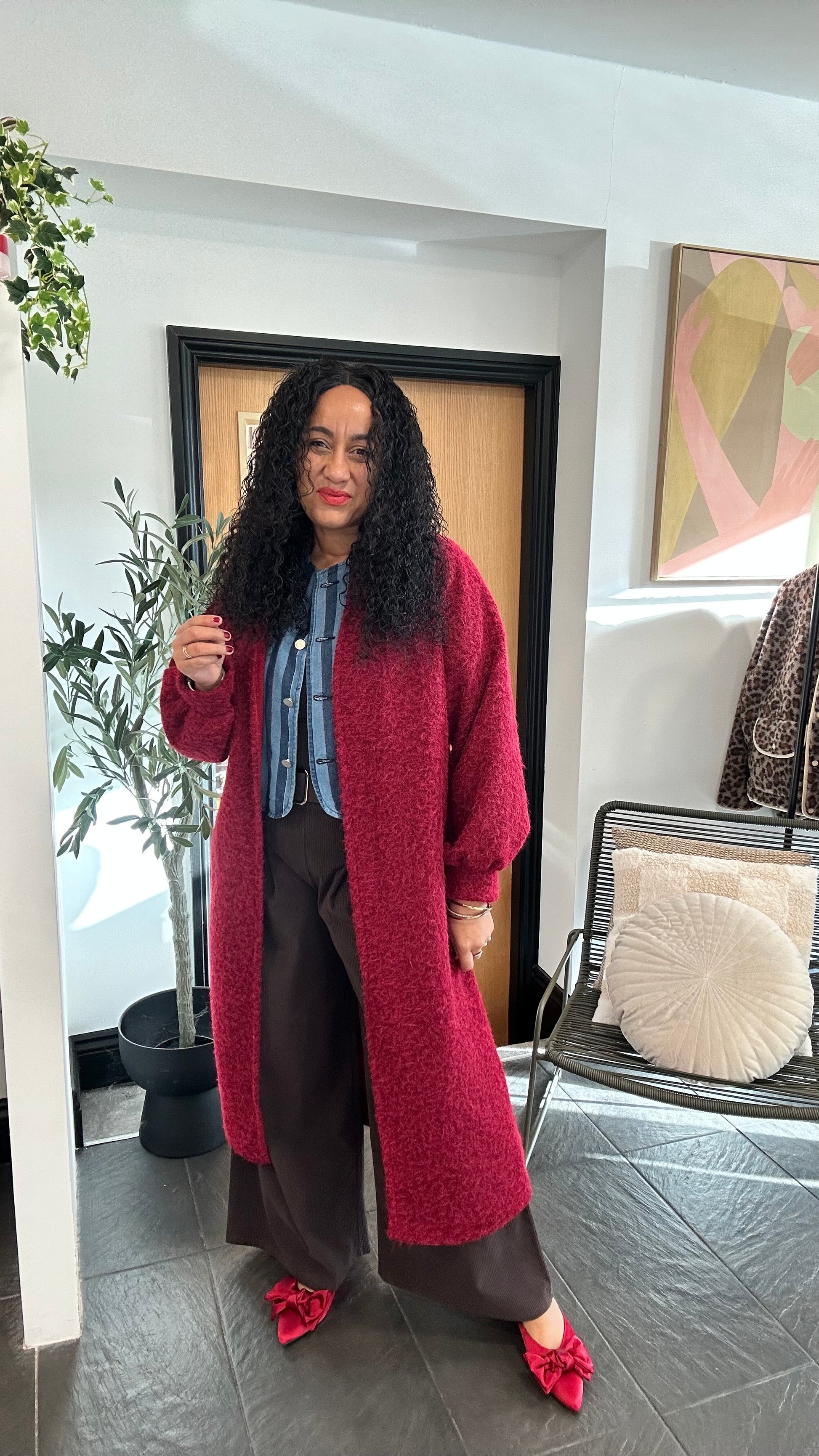Wrap yourself in effortless style and warmth with this beautifully soft textured coatigan. Perfect for layering, it combines the comfort of a cardigan with the structure of a coat. Designed with an open front, relaxed sleeves, and deep pockets, it’s ideal for everyday wear, from casual weekends to smart-casual outings.