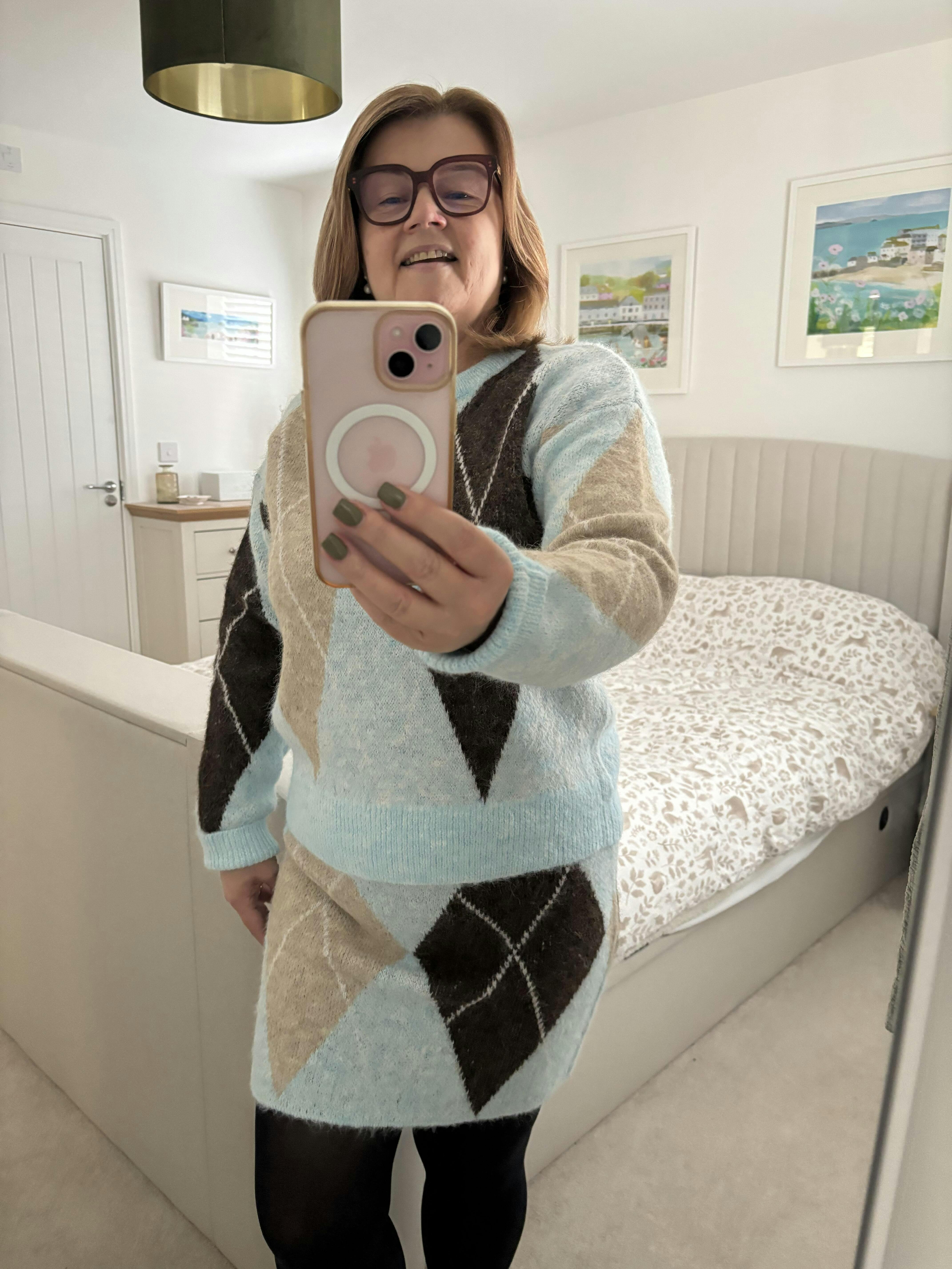 Add a cosy chic touch to your wardrobe with our must have Argyle Knit Set. Featuring a soft, lightweight jumper with a classic diamond pattern and a perfectly matching skirt, this set is ideal for effortless everyday style.