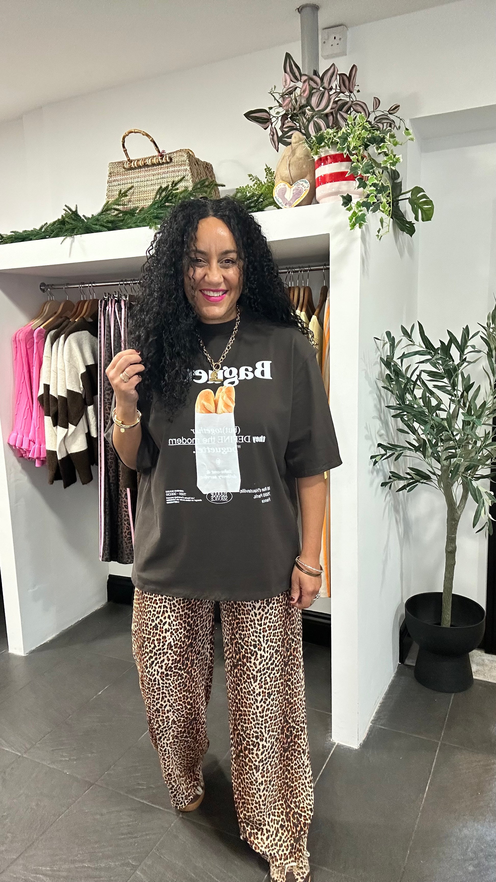 🥖 BAGUETTE GRAPHIC OVERSIZED T-SHIRT BROWN *New