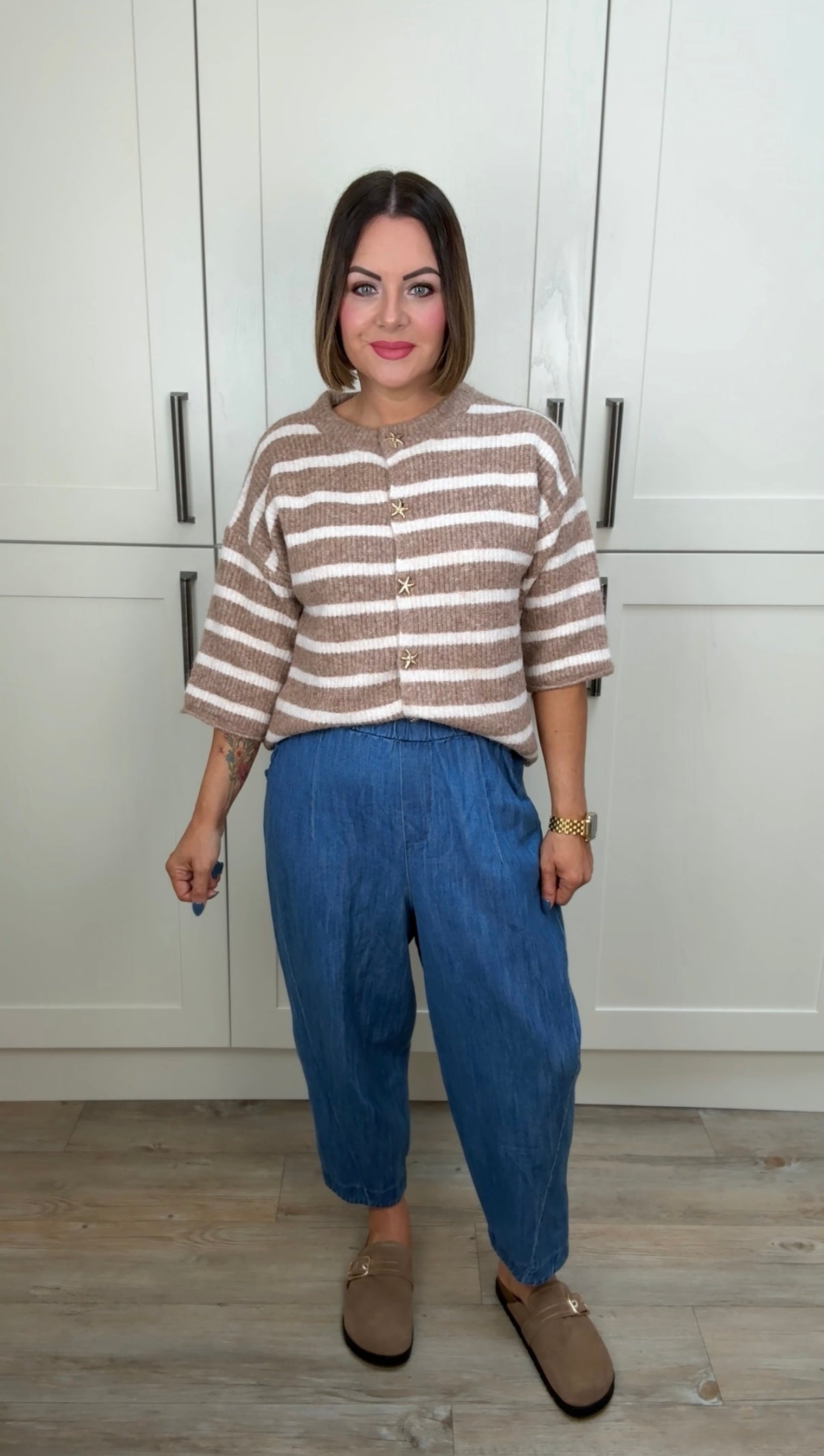 - Relaxed barrel leg shape