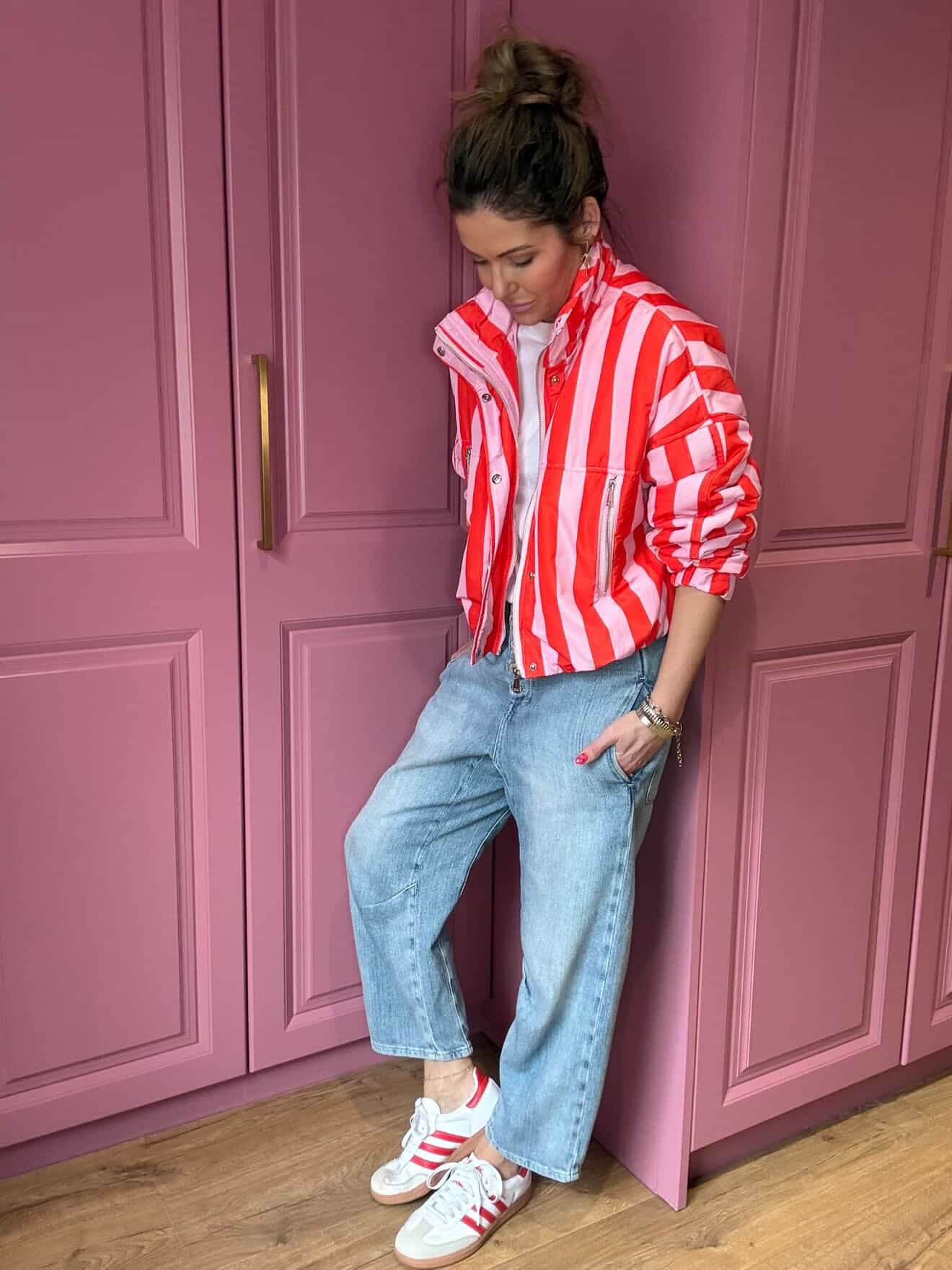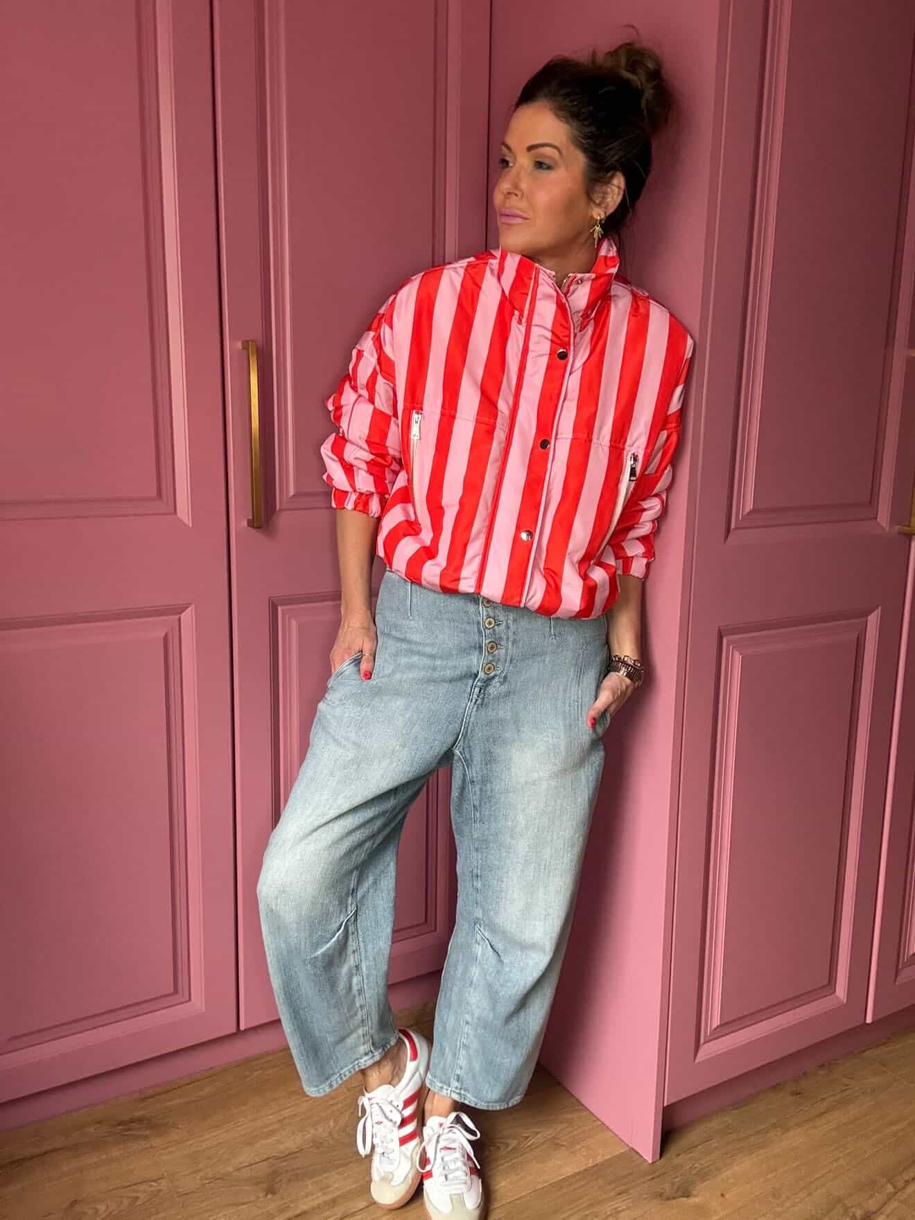CANDY STRIPE BOMBER JACKET PINK & RED *New