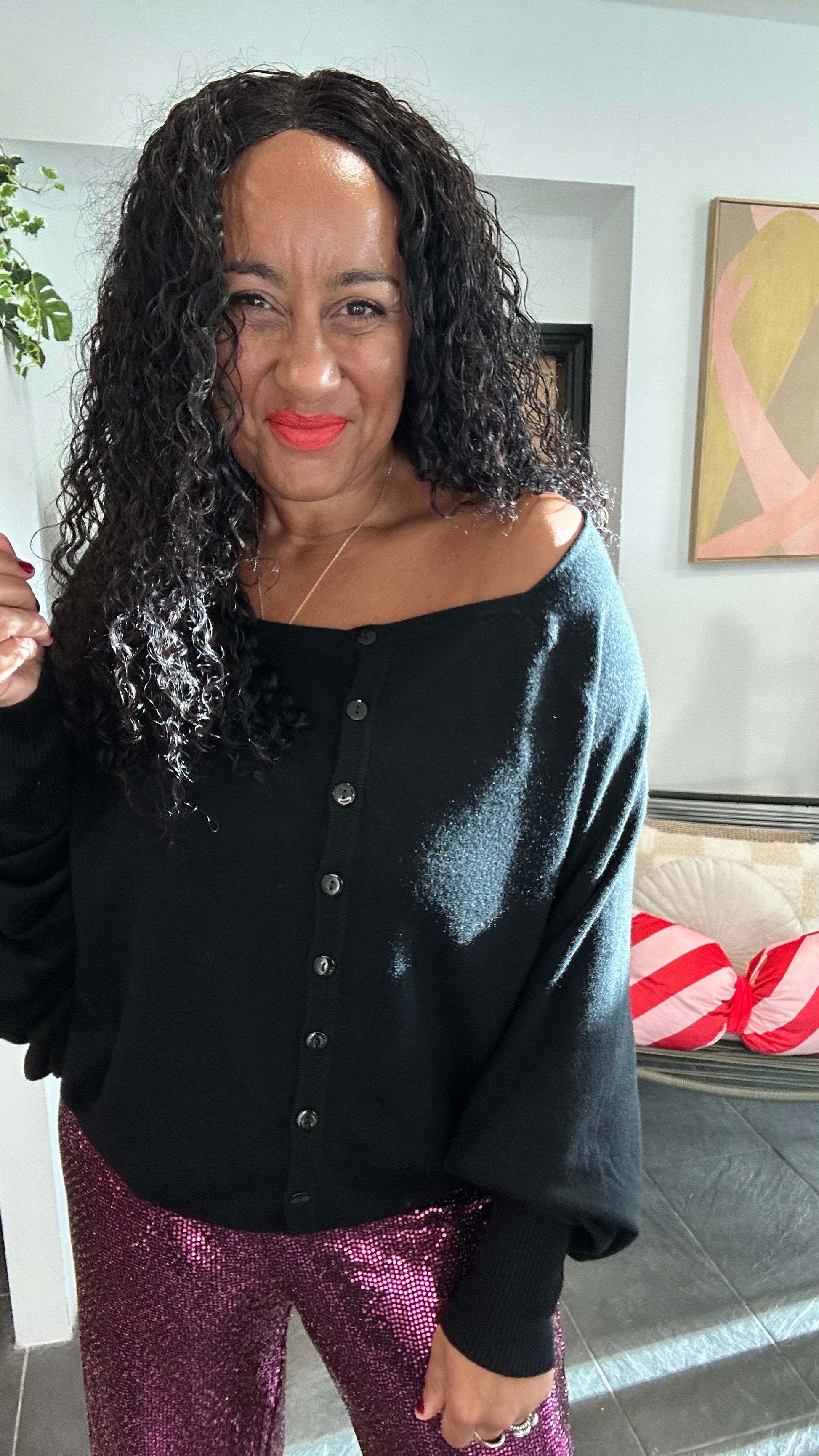 MULTIFUNCTIONAL BUTTON BACK BATWING TOP BLACK *New