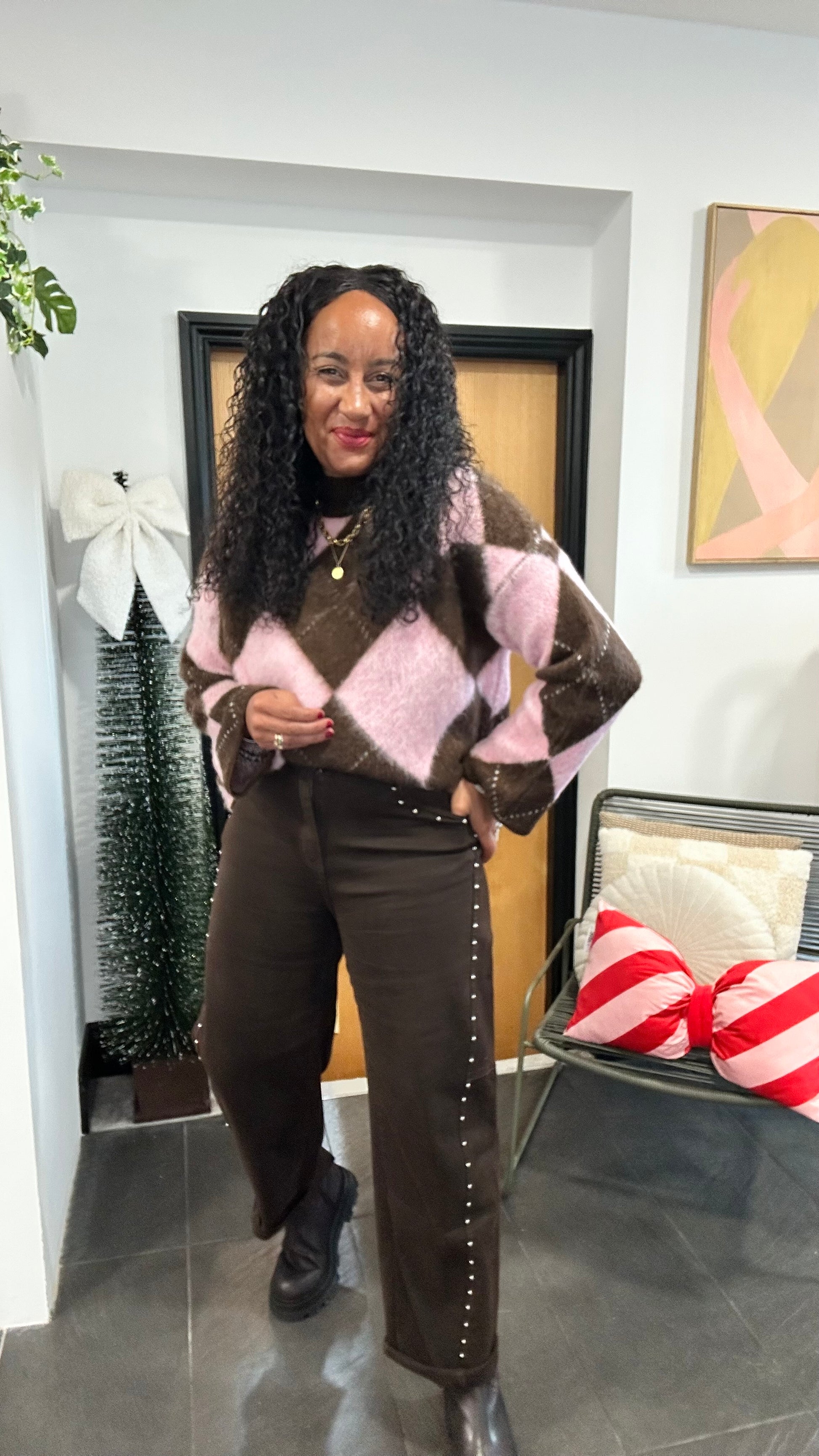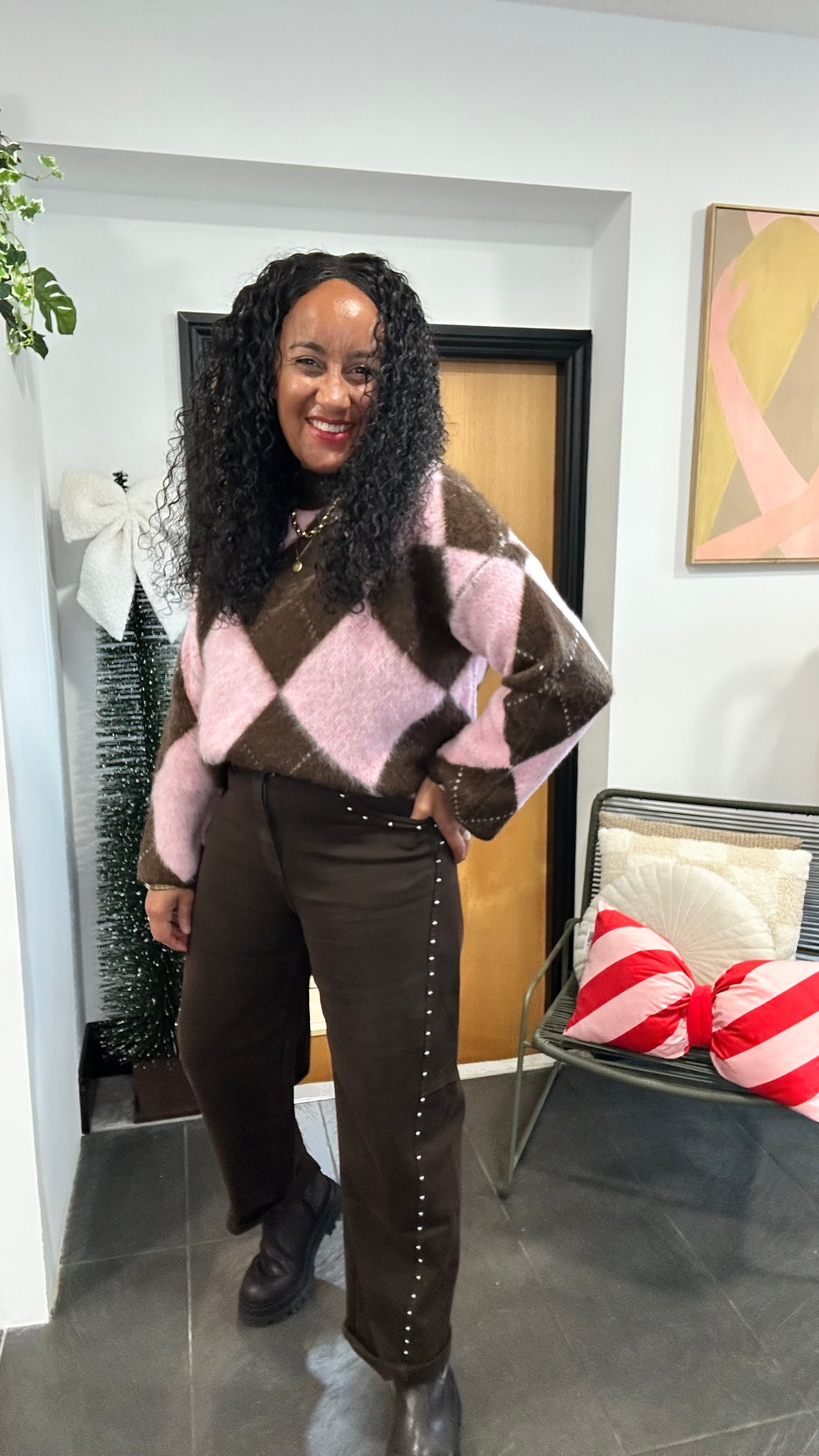 CHANNEL HIGH WAISTED STUD JEANS BROWN *New