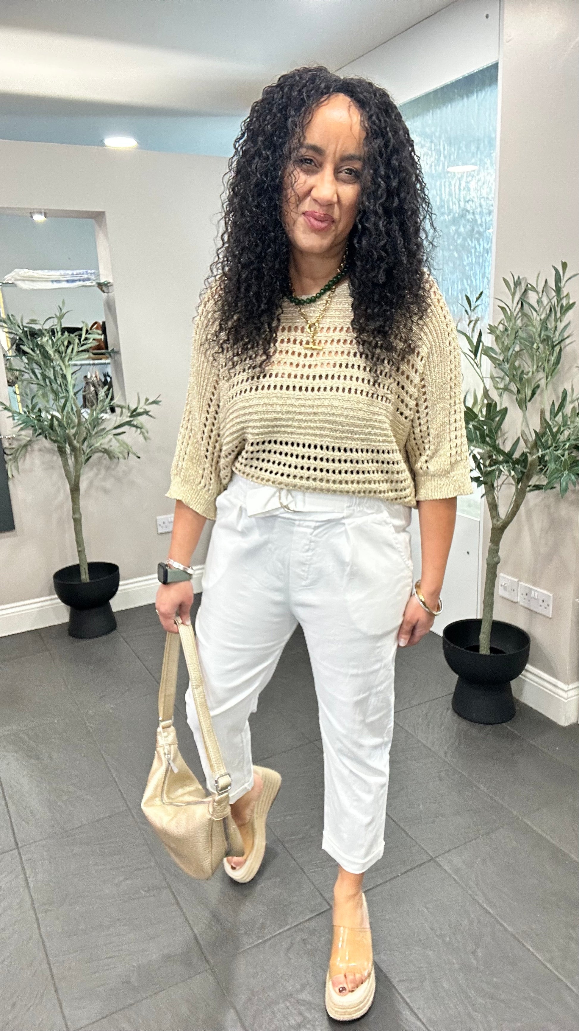 Designed with a flattering high-waisted silhouette, they feature an elasticated back for the perfect fit and a matching belt to define the waist.