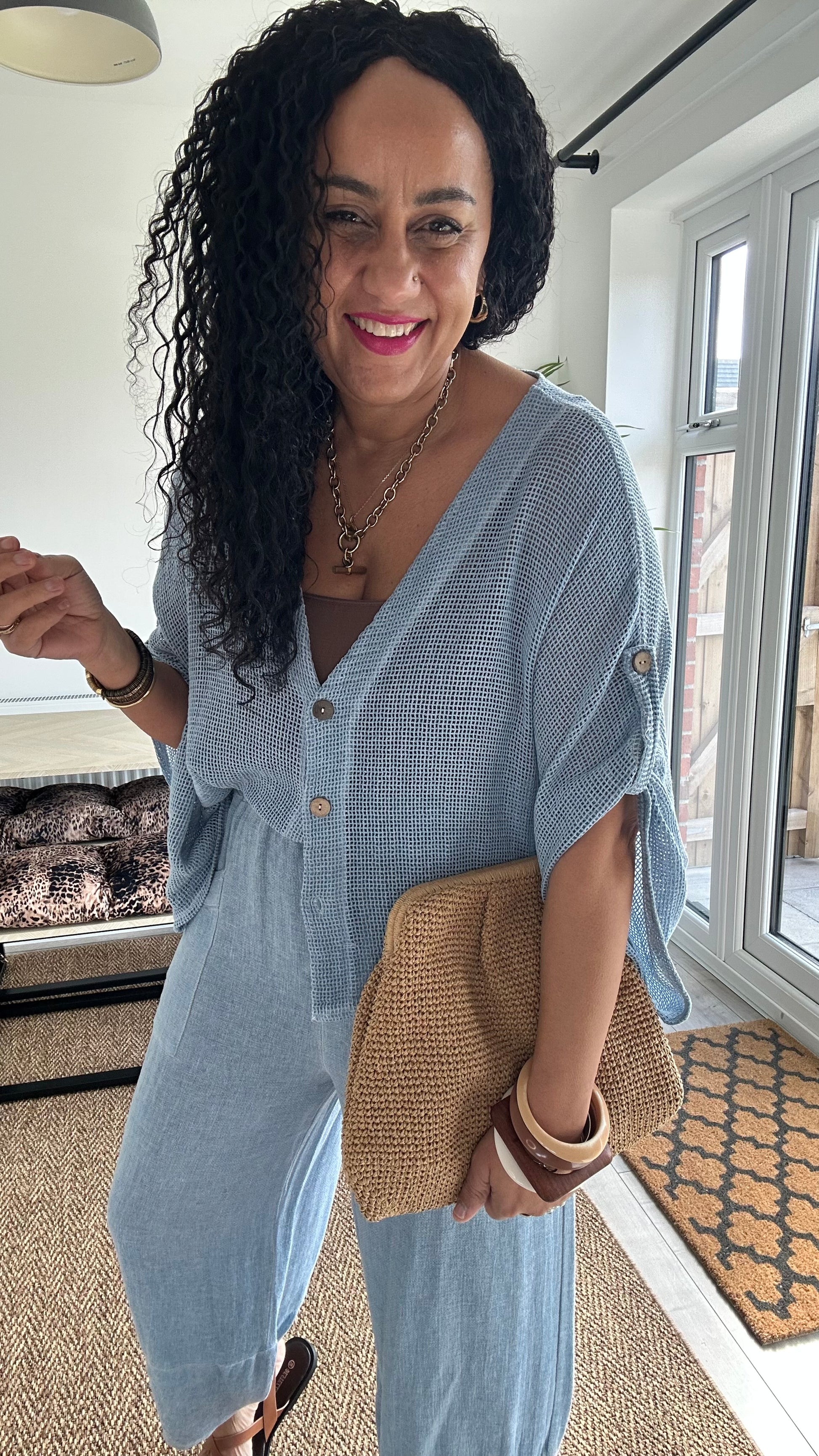 Perfect for warm days or layering, this versatile top pairs effortlessly with linen trousers, denim, or shorts for a relaxed, chic look. Whether you’re heading out for brunch, a beach stroll, or a casual evening out, this piece brings easy elegance to your wardrobe.