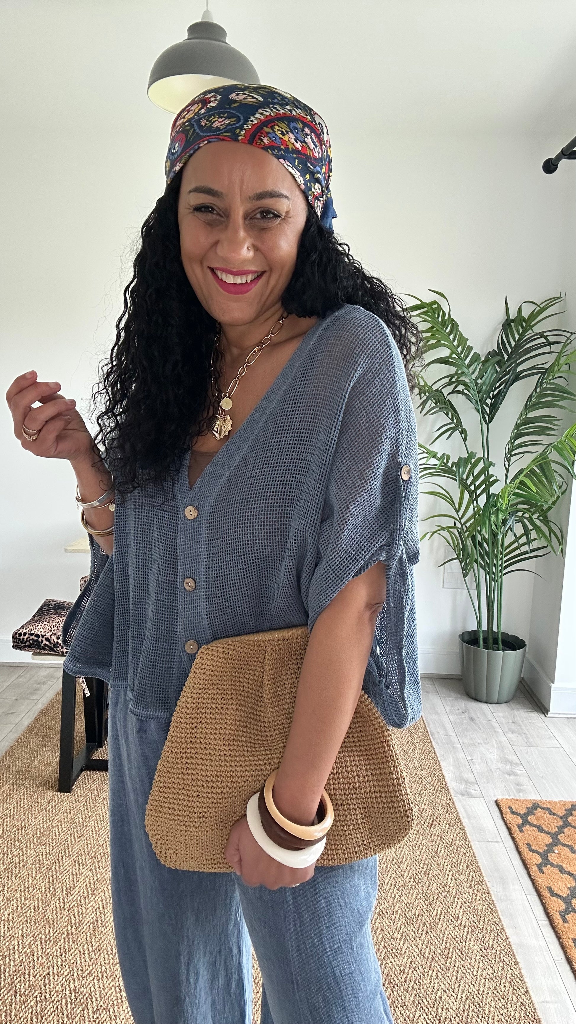 Perfect for warm days or layering, this versatile top pairs effortlessly with linen trousers, denim, or shorts for a relaxed, chic look. Whether you’re heading out for brunch, a beach stroll, or a casual evening out, this piece brings easy elegance to your wardrobe.