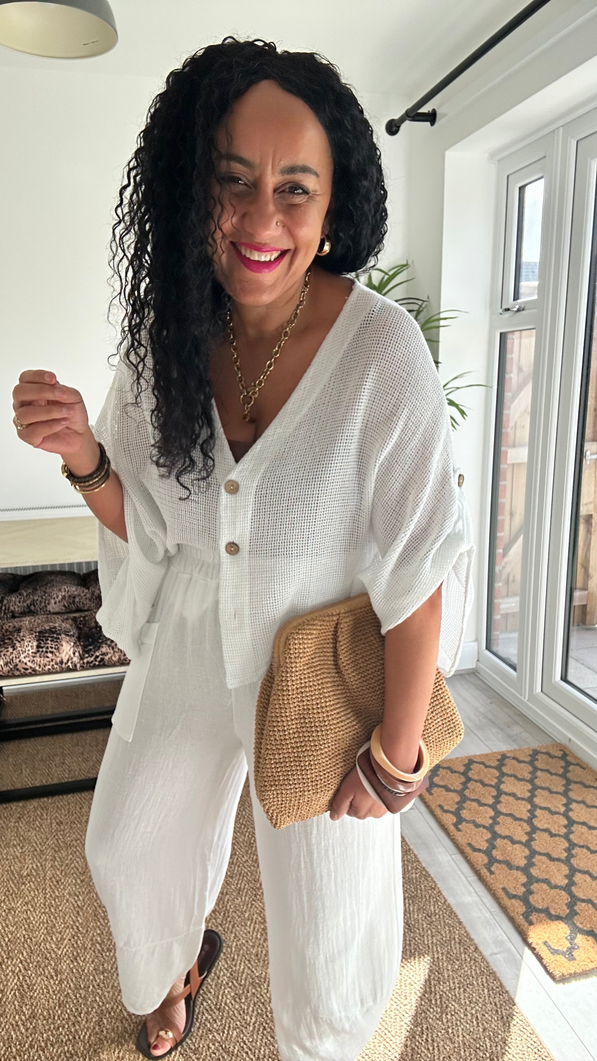 Perfect for warm days or layering, this versatile top pairs effortlessly with linen trousers, denim, or shorts for a relaxed, chic look. Whether you’re heading out for brunch, a beach stroll, or a casual evening out, this piece brings easy elegance to your wardrobe.