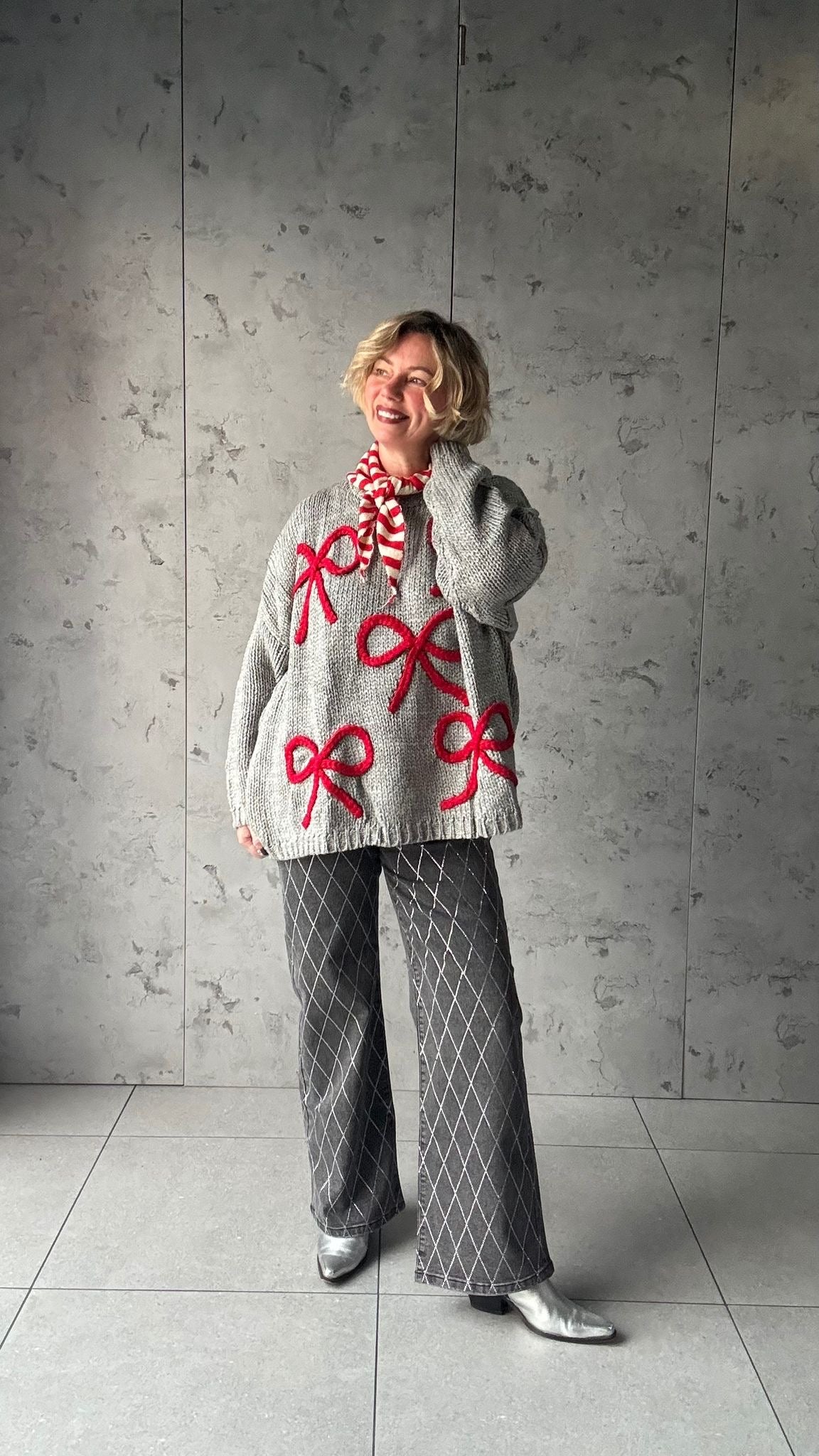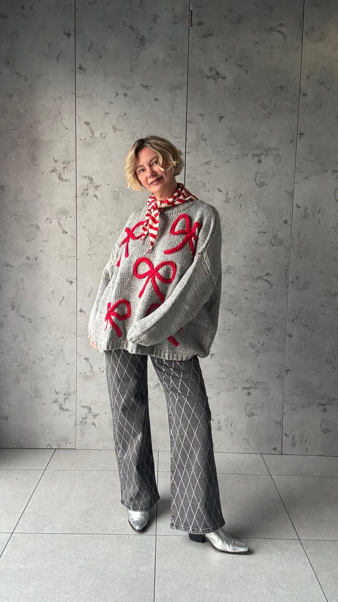 Make a statement with these striking embellished jeans, featuring an all-over diamond pattern crafted from delicate rhinestone detailing. Designed in a timeless grey wash, these jeans combine classic denim structure with a modern, elevated twist.