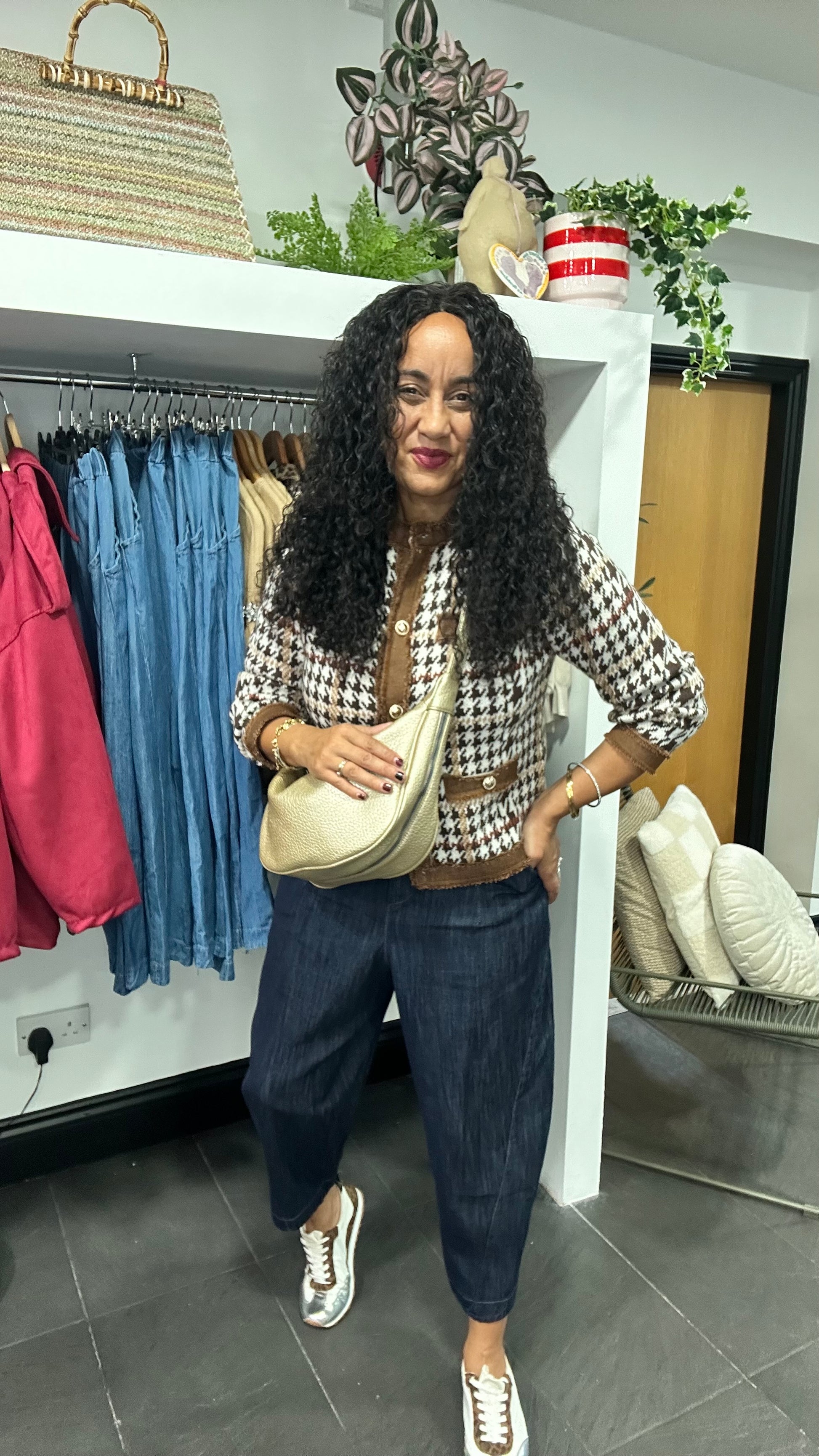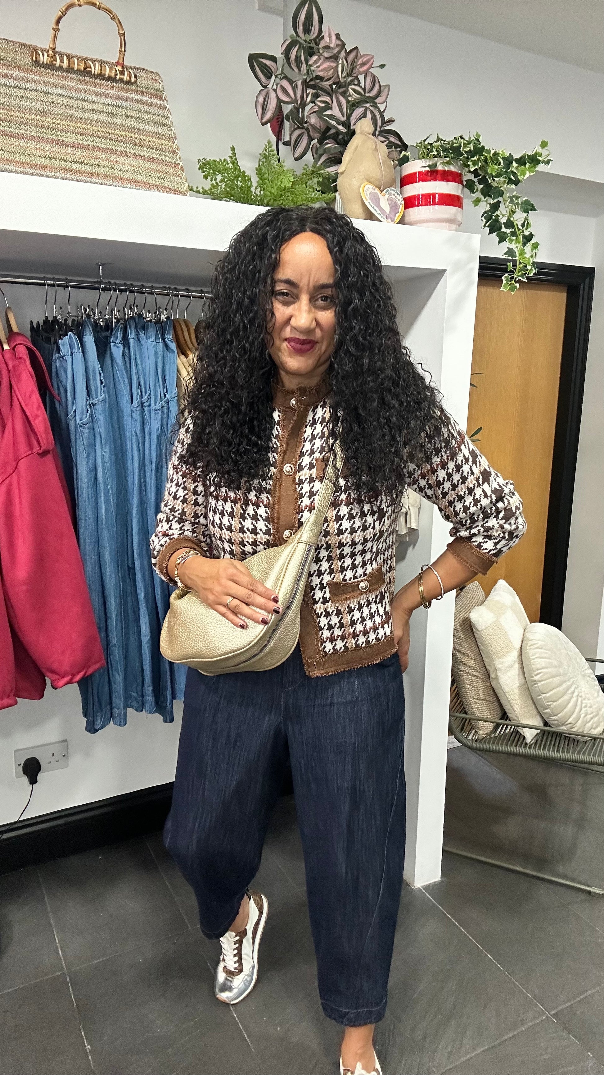 Houndstooth Trim Detail Cardigan