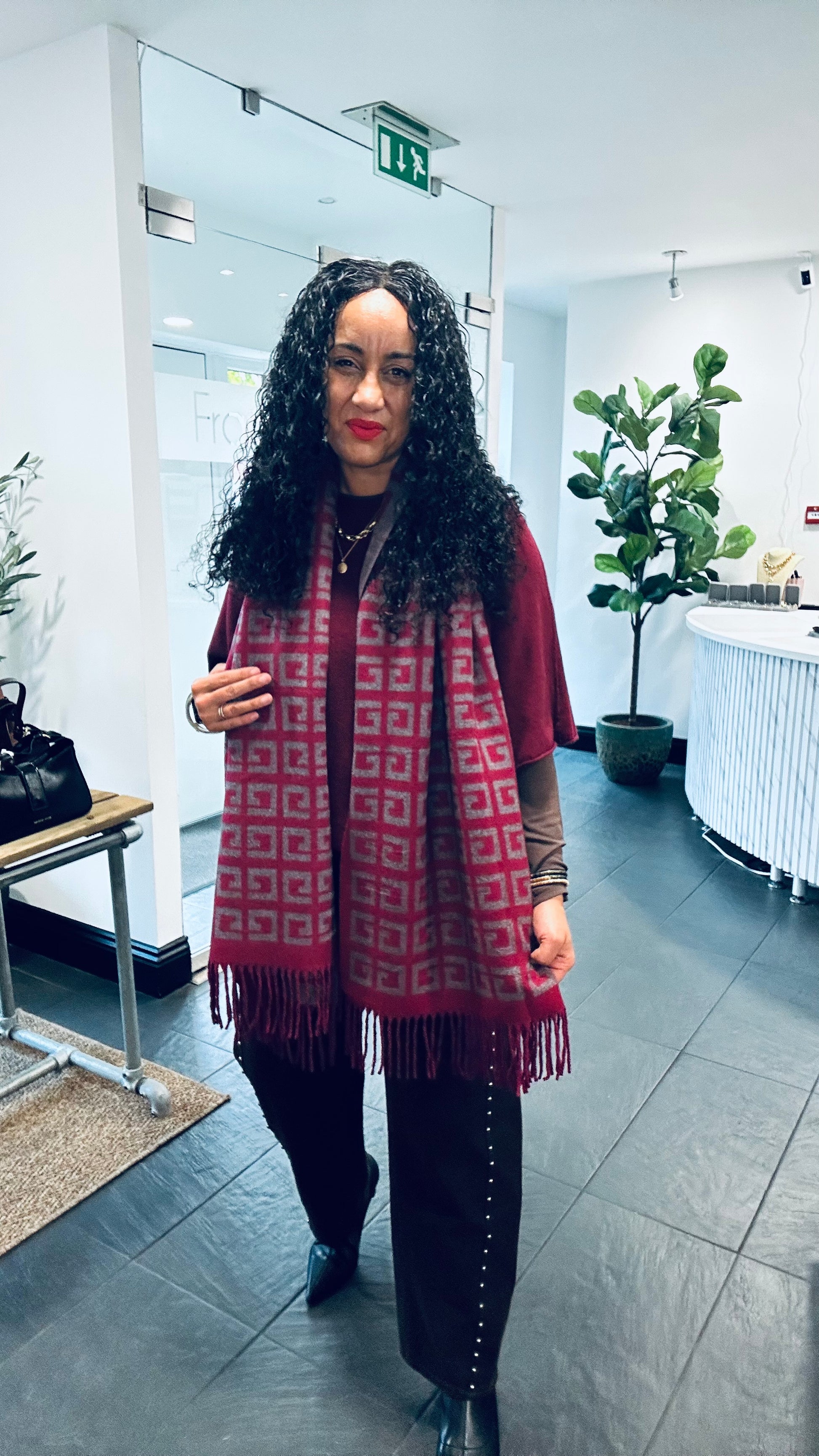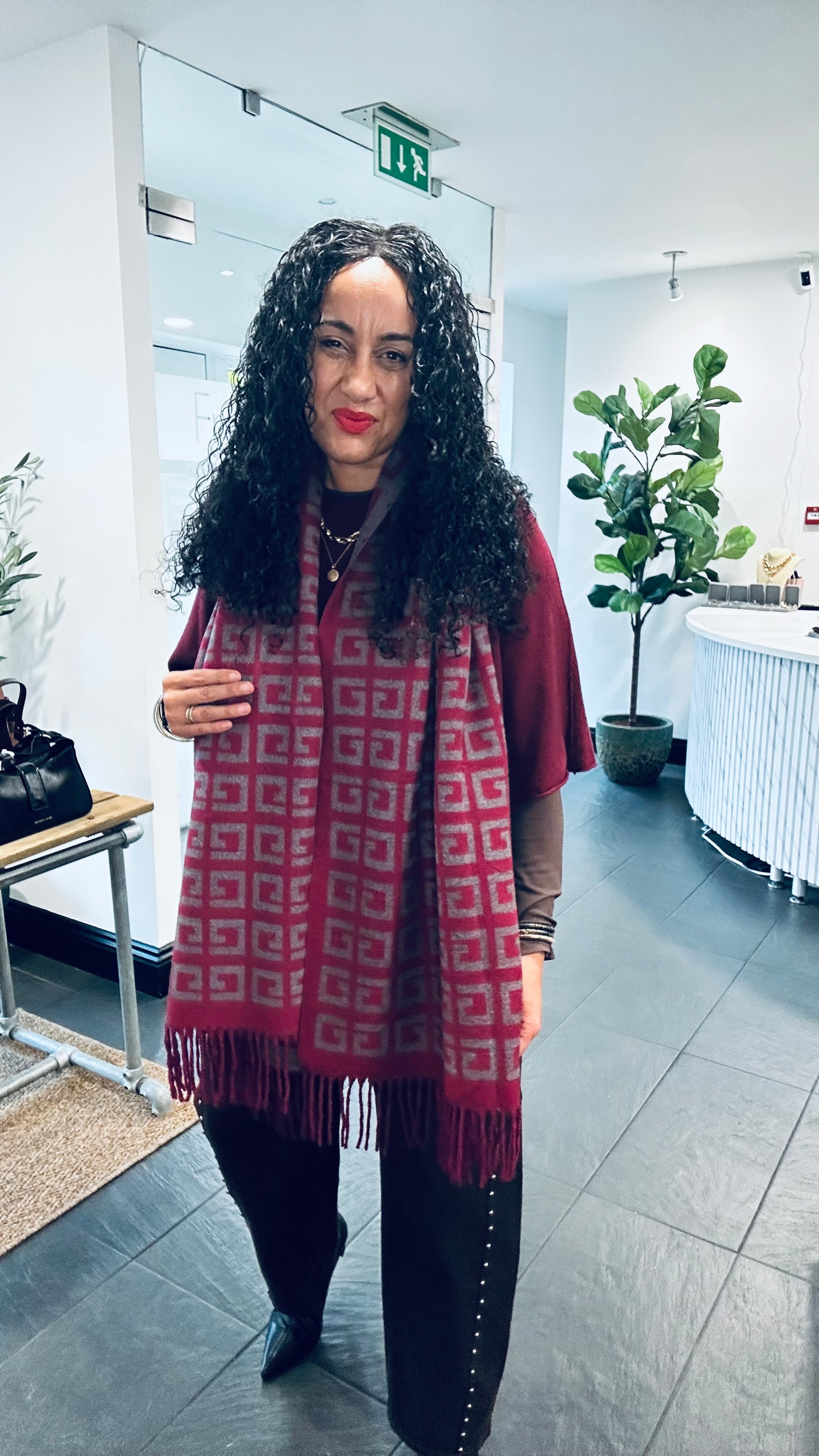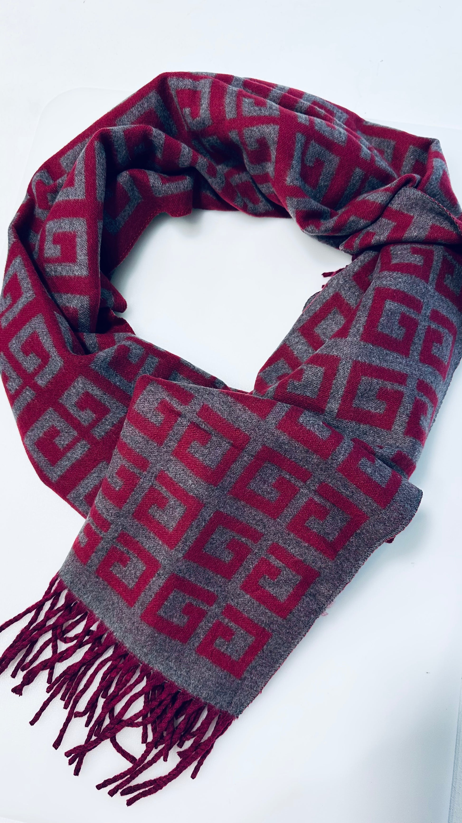 GEOMETRIC REVERSIBLE SCARF BURGUNDY & GREY *New