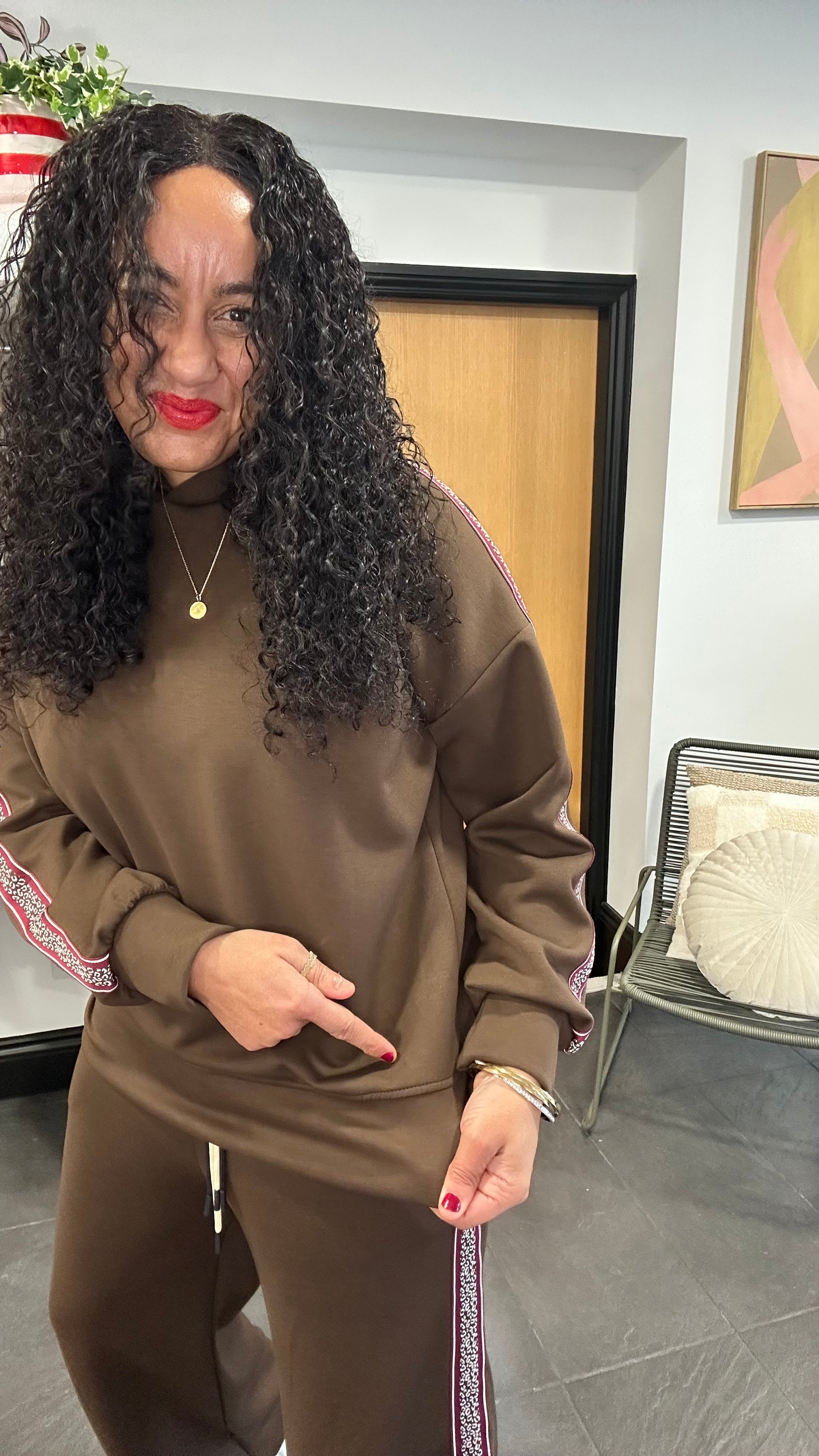 HOLLY HOODED TRACKSUIT SET DEEP BROWN *New