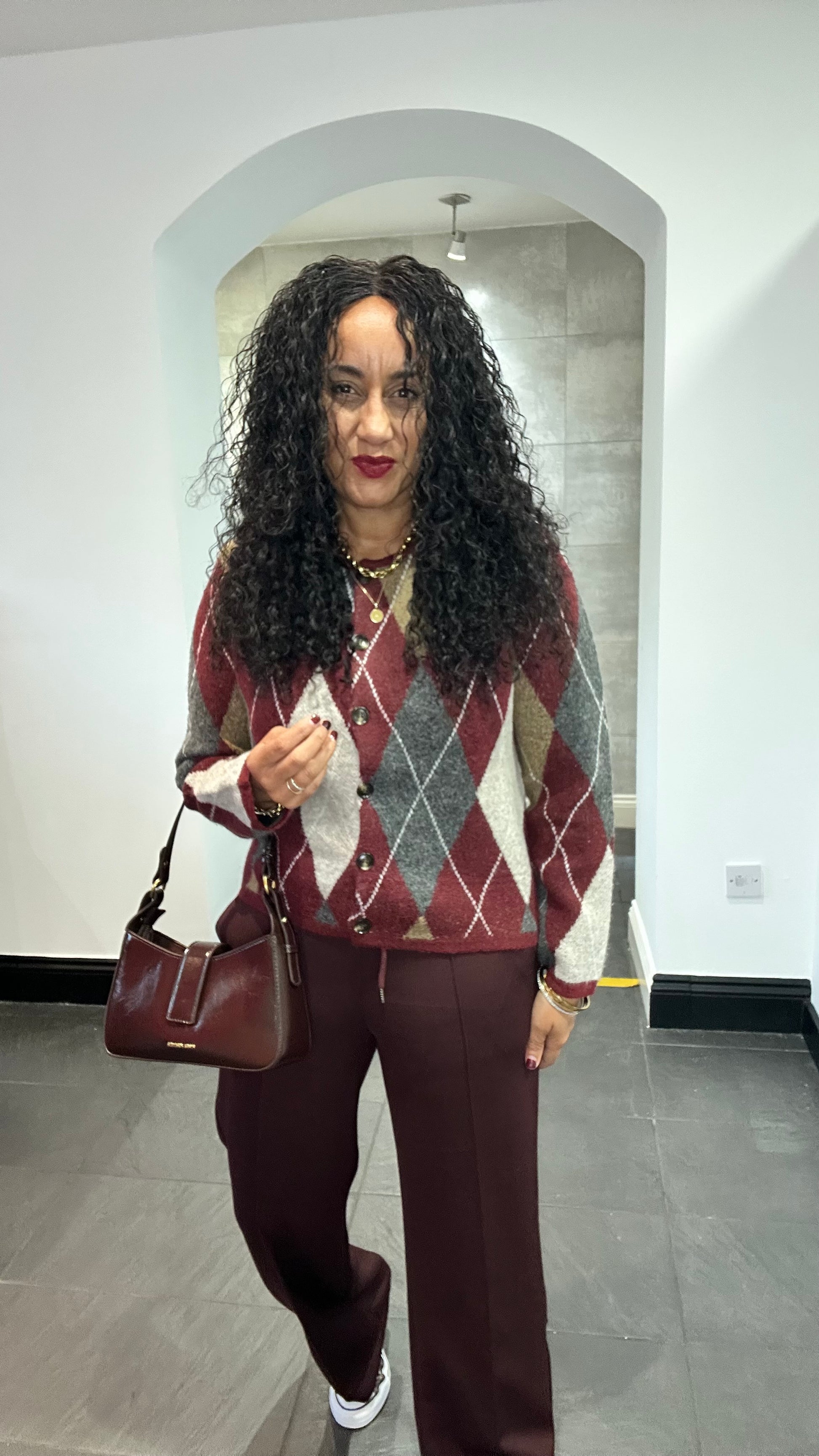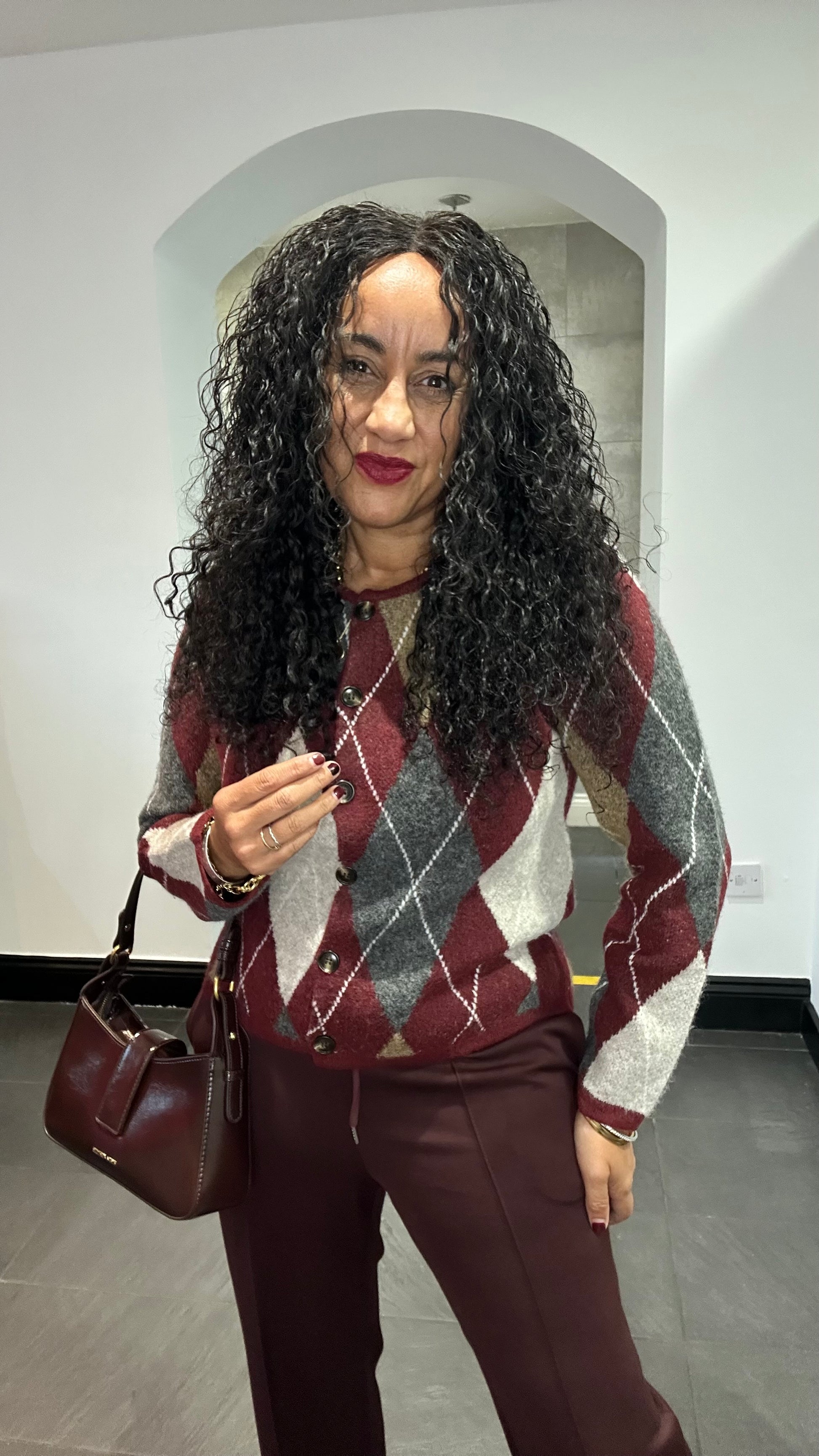 A timeless classic with a modern twist, this argyle knit cardigan is the perfect layering piece for smart-casual style. Available in three rich colour ways, each design adds a pop of vintage charm with a cozy, contemporary feel.