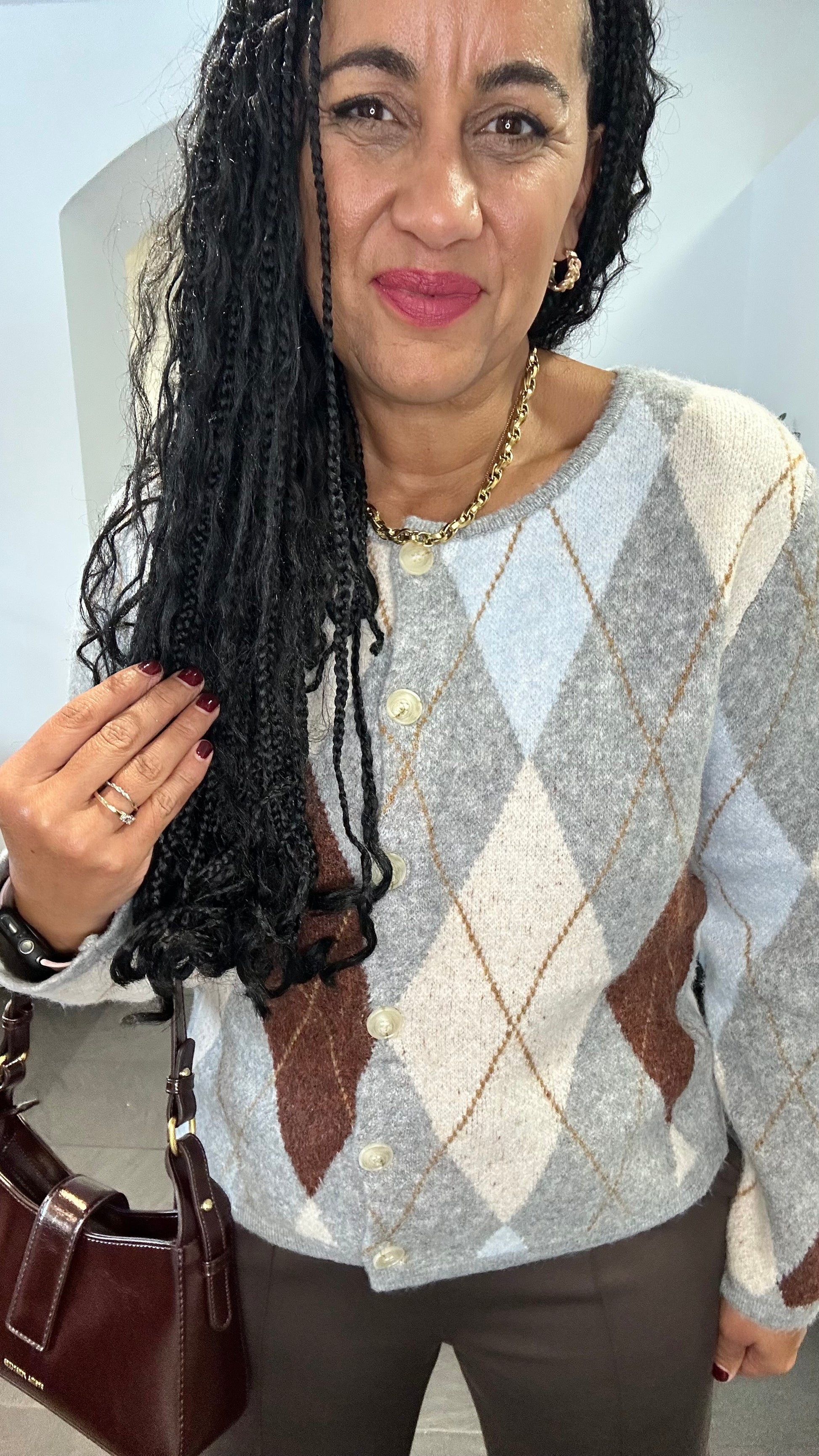 KILKY ARGYLE DIAMOND CARDIGAN POWDER BLUE *New