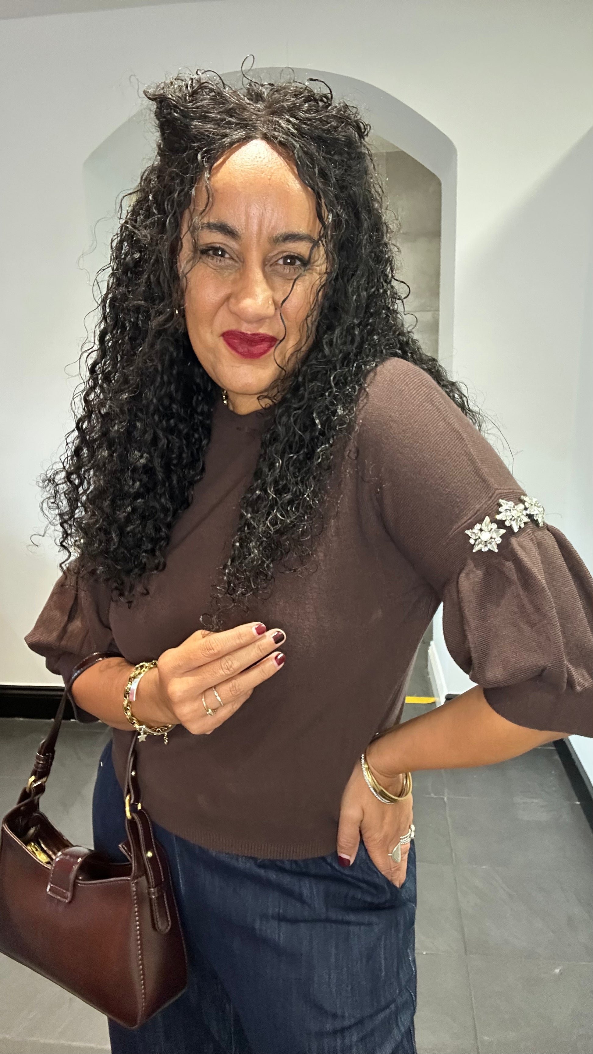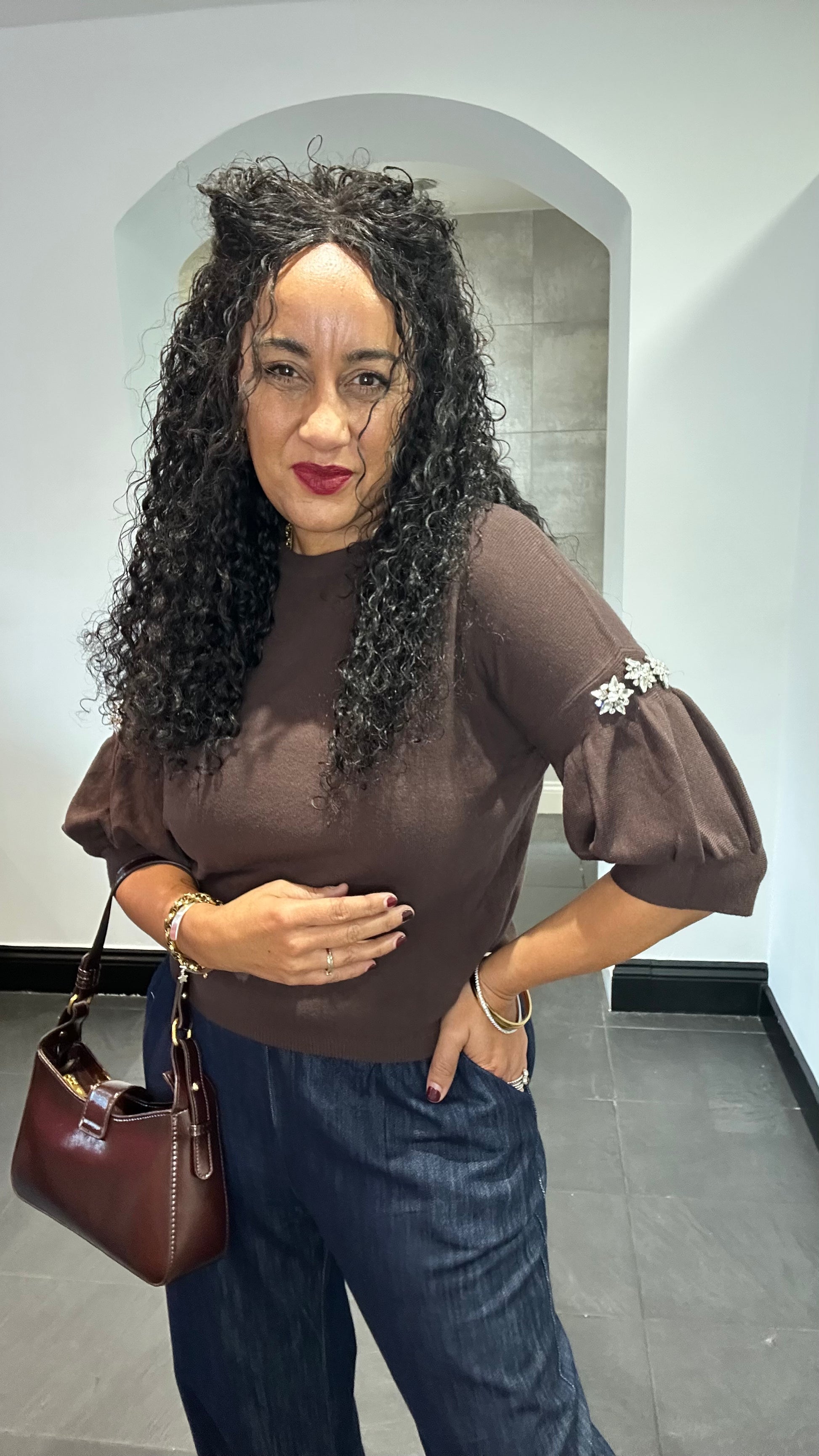 LORNA EMBELLISHED SLEEVED TOP RICH CHOCOLATE BROWN *New