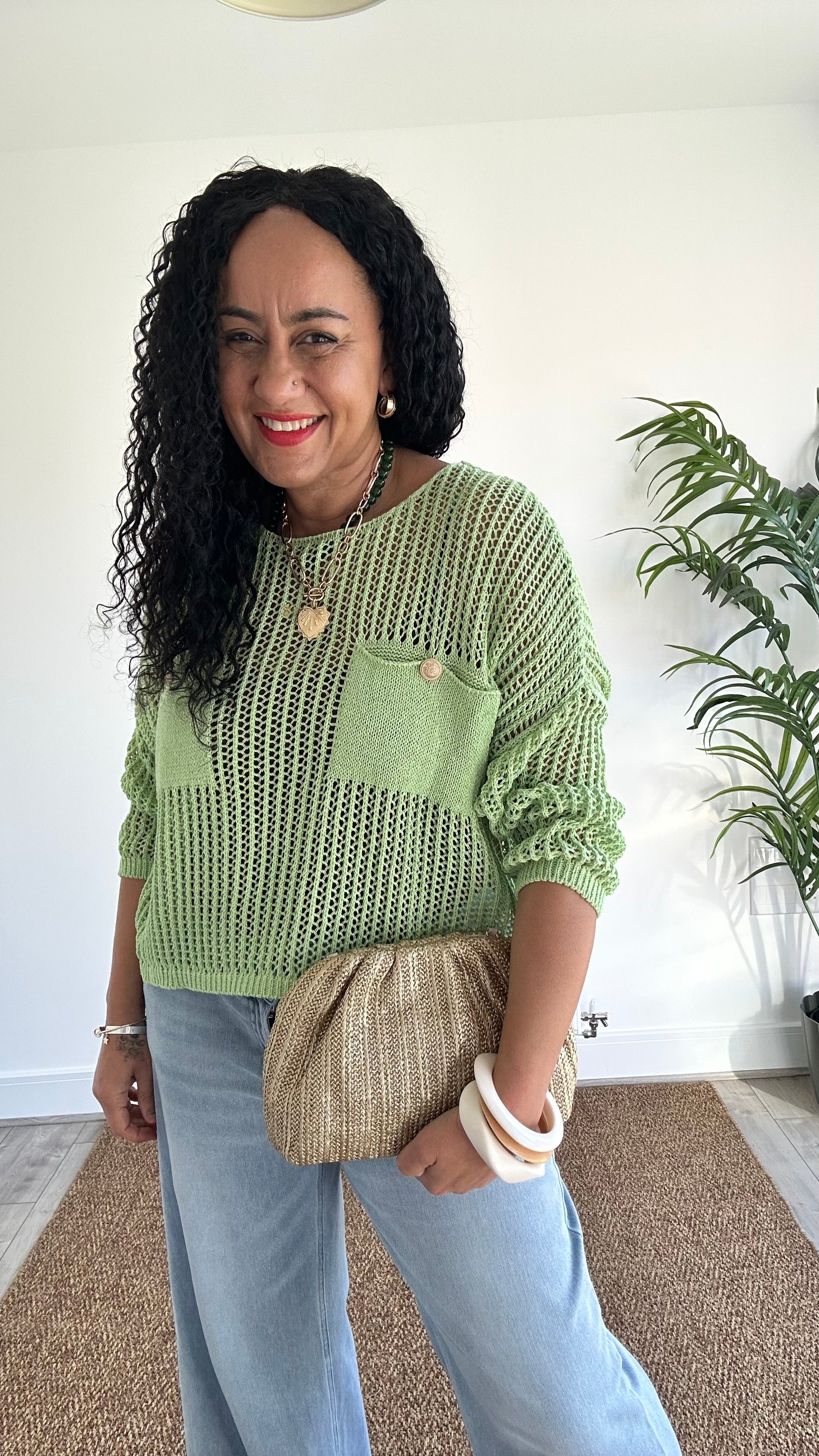 LUREX FISHERMAN CROCHET POCKET KNIT LIME 🍋🟩 GREEN *New
