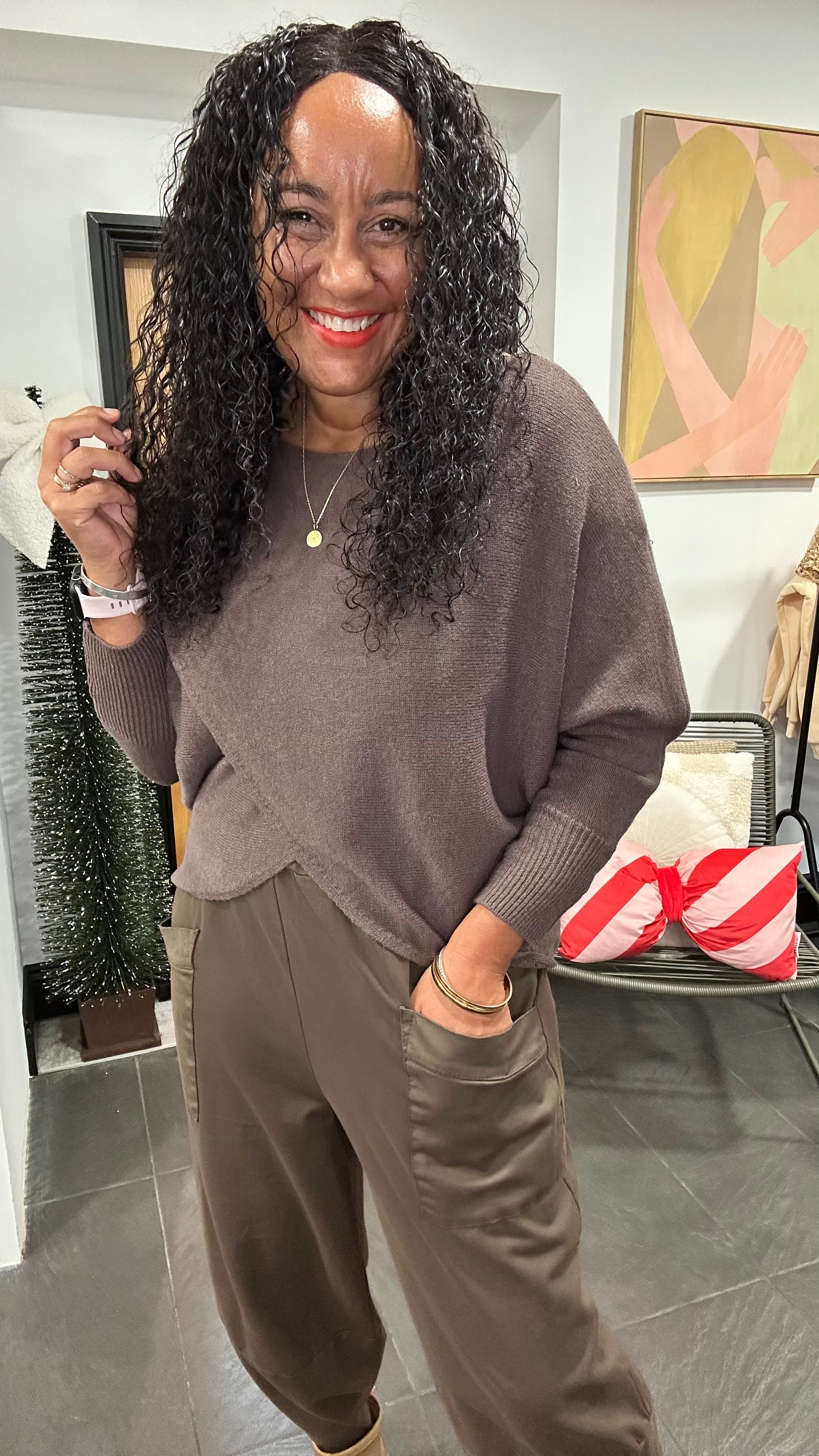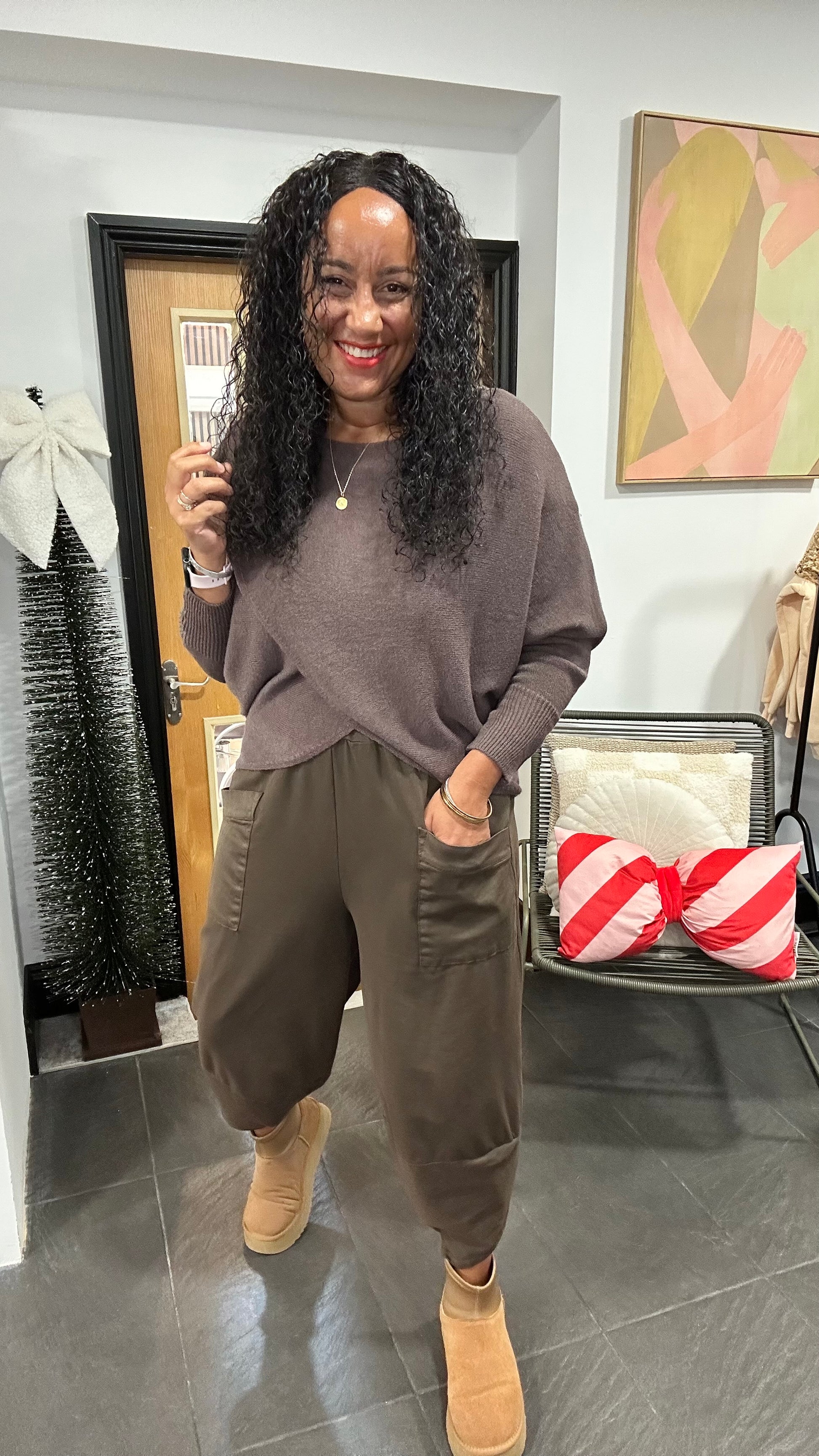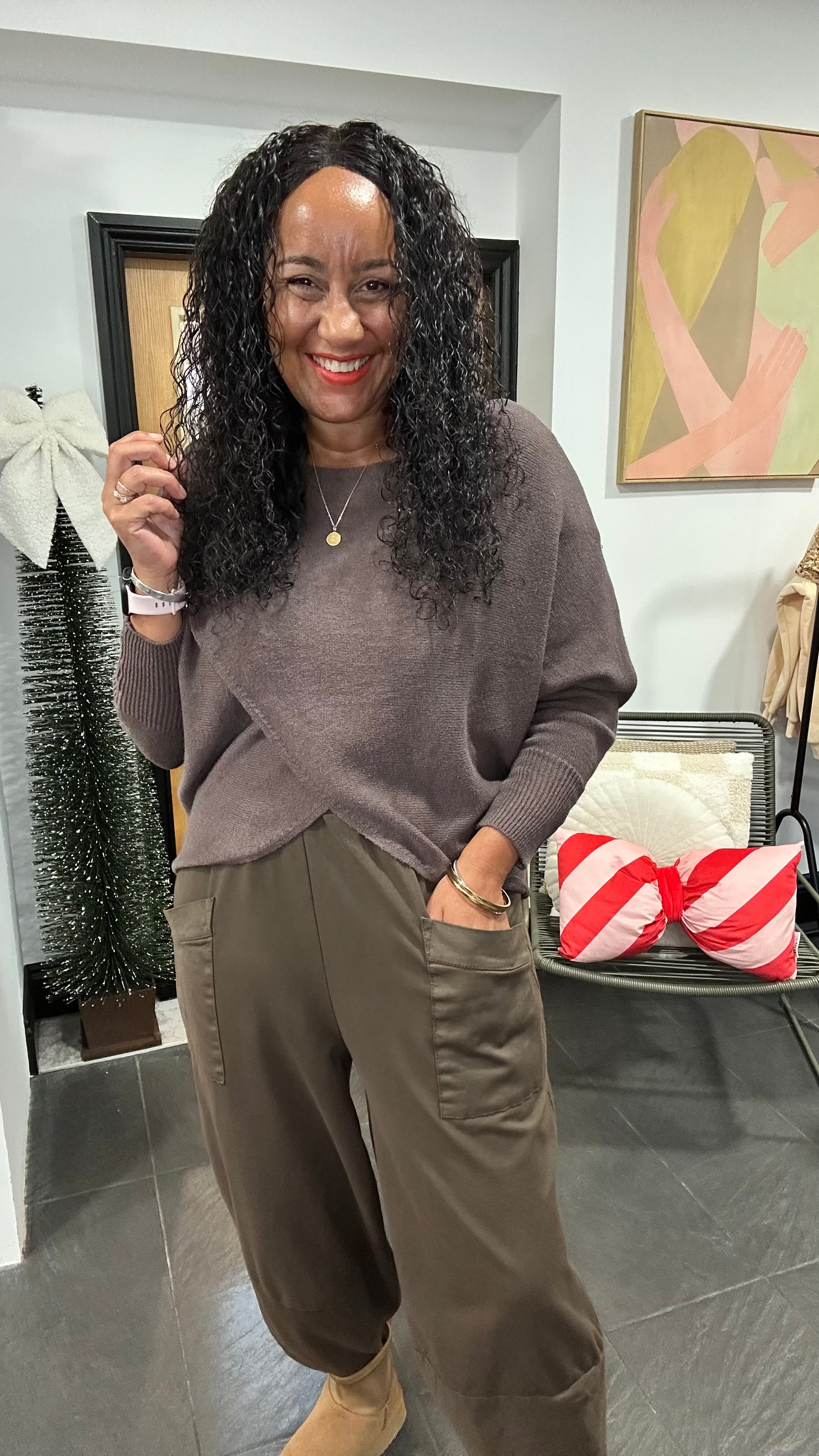 MABLE FRONT CROSS WRAP JUMPER MOCHA *New