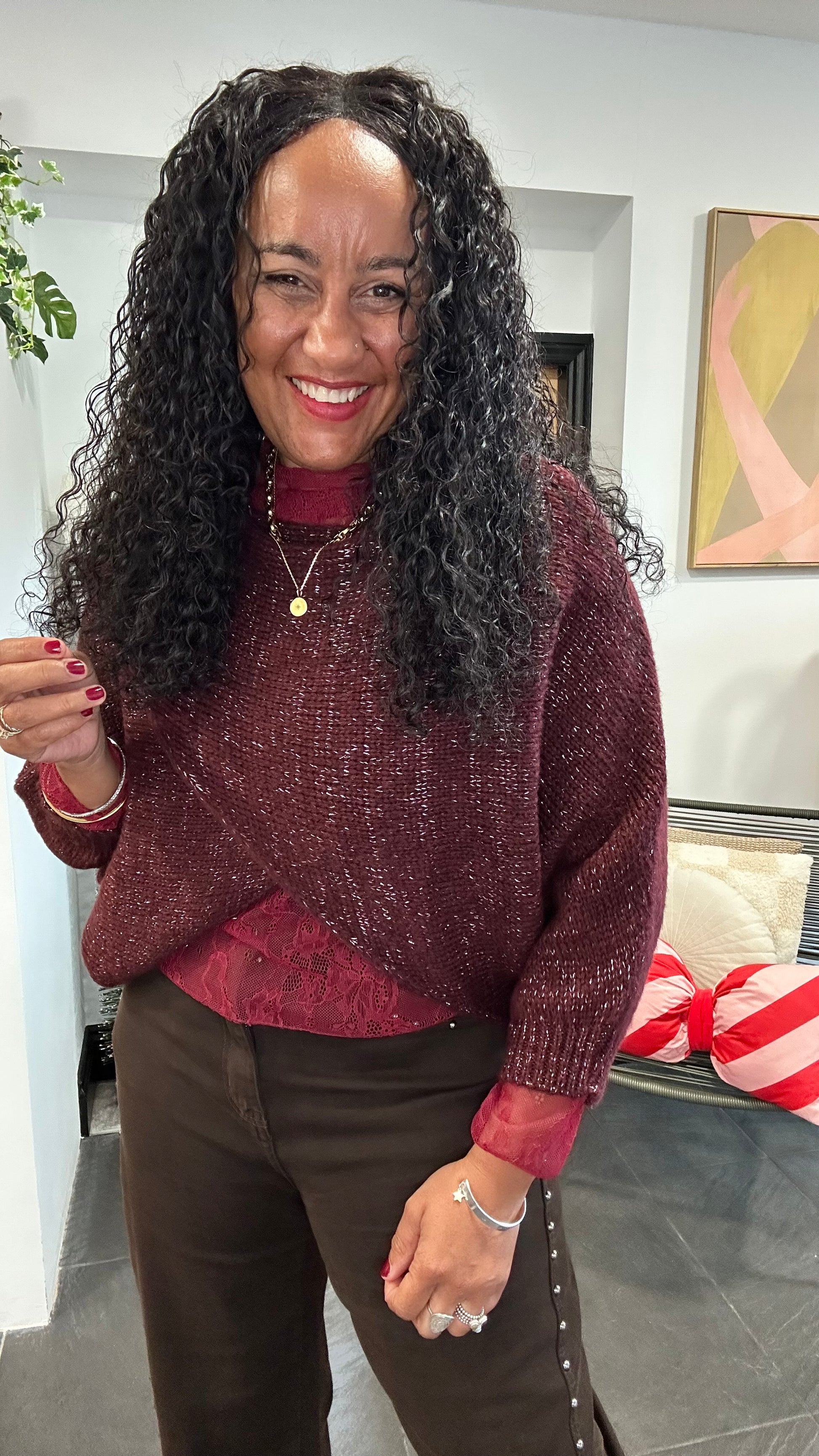 Available in multiple rich tones, cream, black, chocolate brown, deep berry burgundy, and plum, each with a touch of sparkle that transitions seamlessly from daytime chic to evening shine.