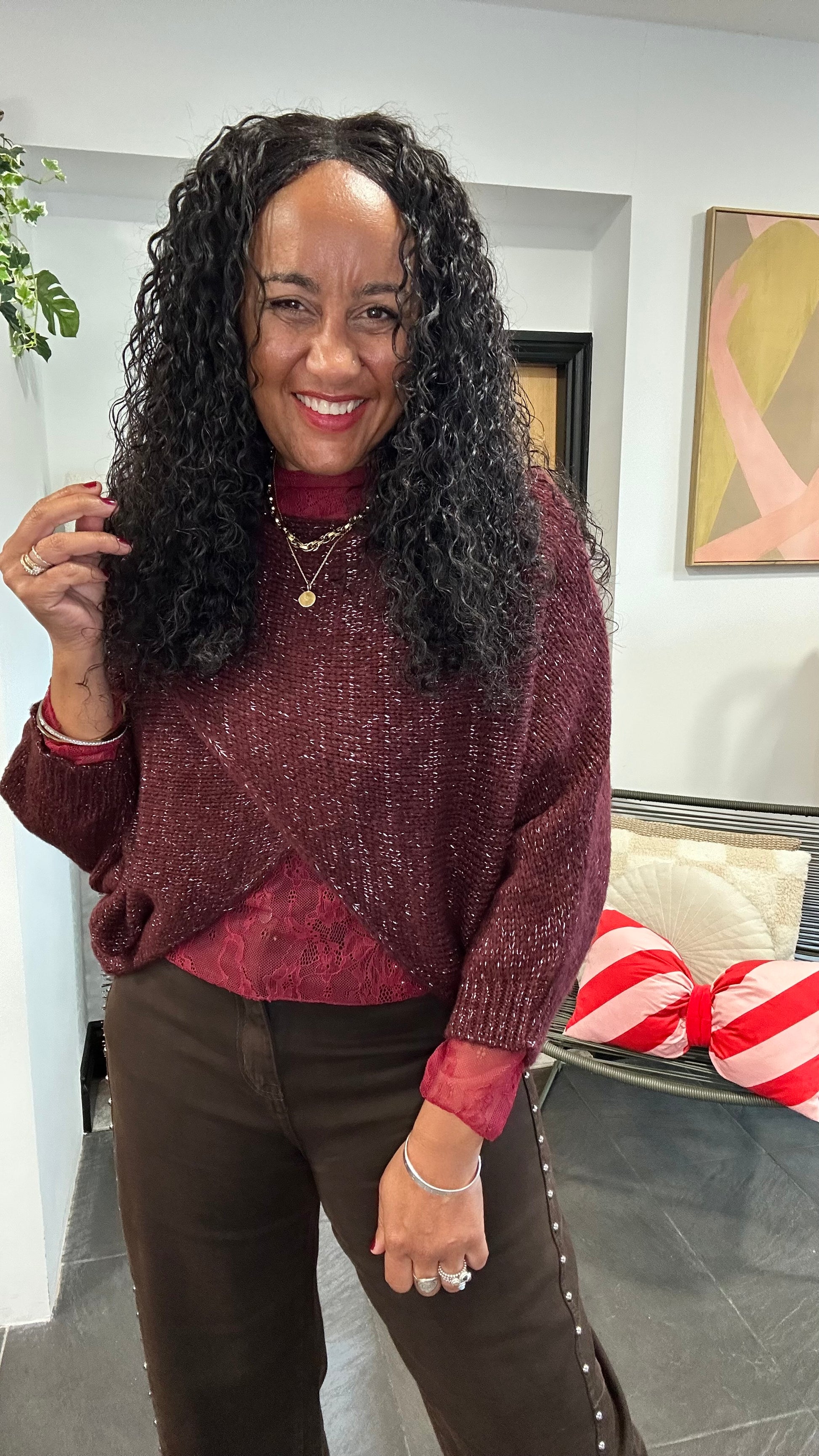 SALE MINI MABLE LUREX REVERSIBLE TOP BURGUNDY