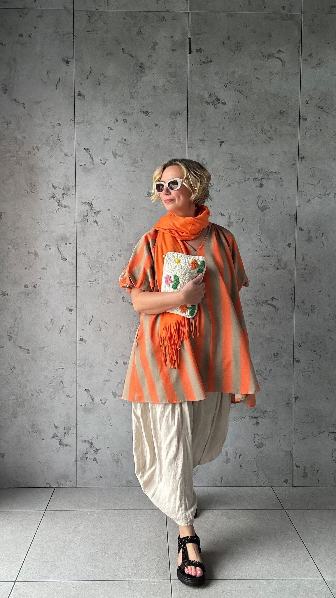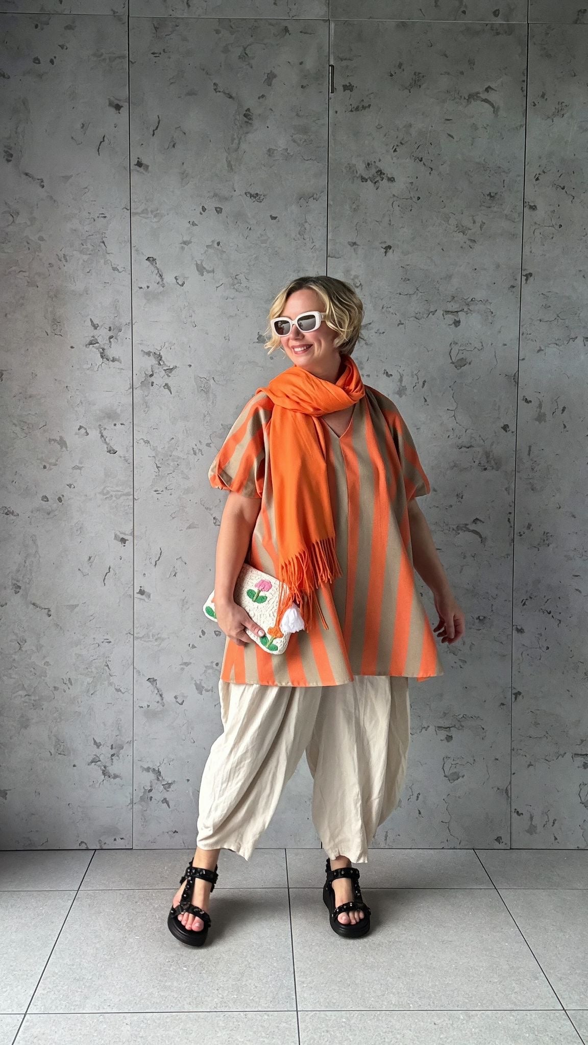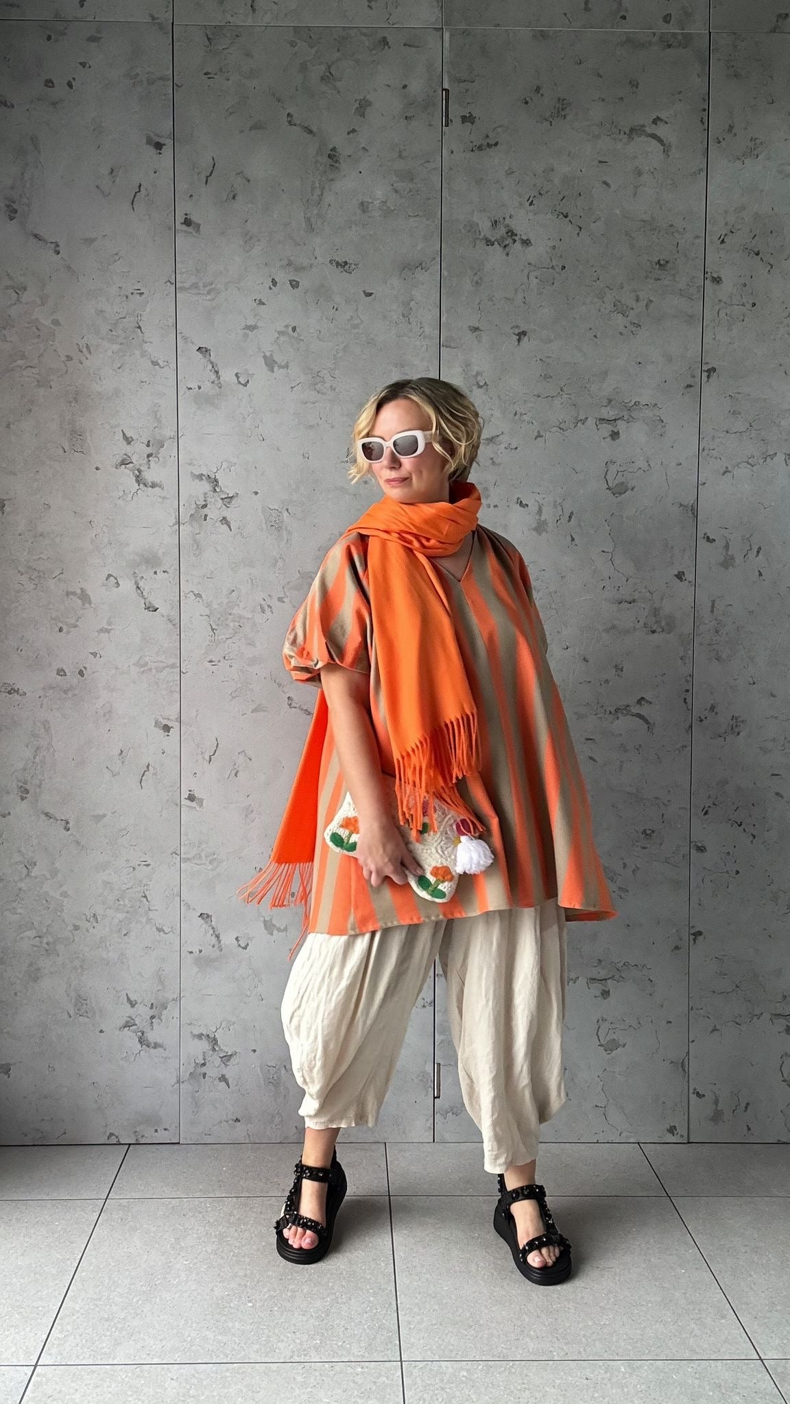 NESSA STRIPE SMOCK TOP / DRESS ORANGE & BROWN *New