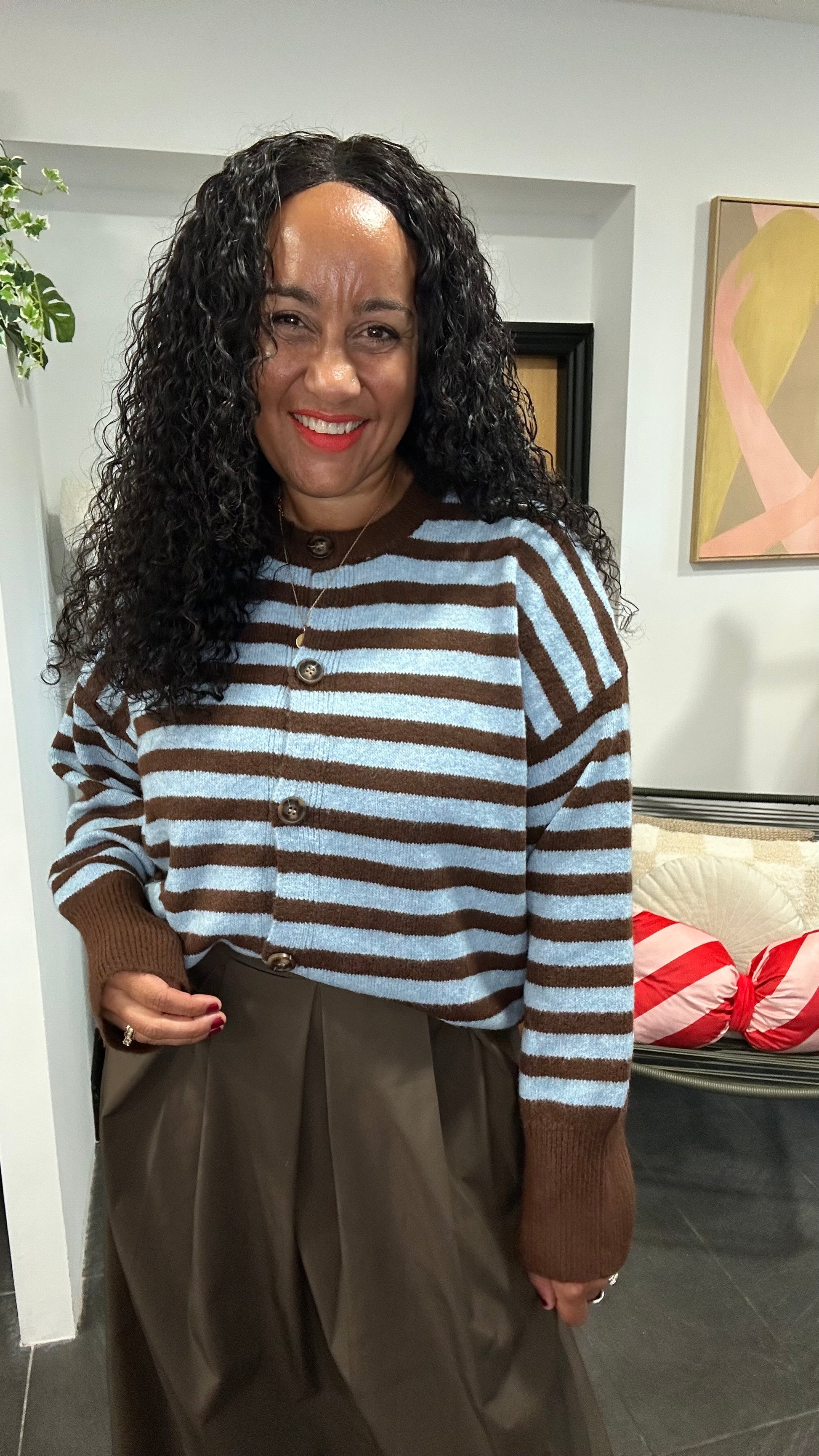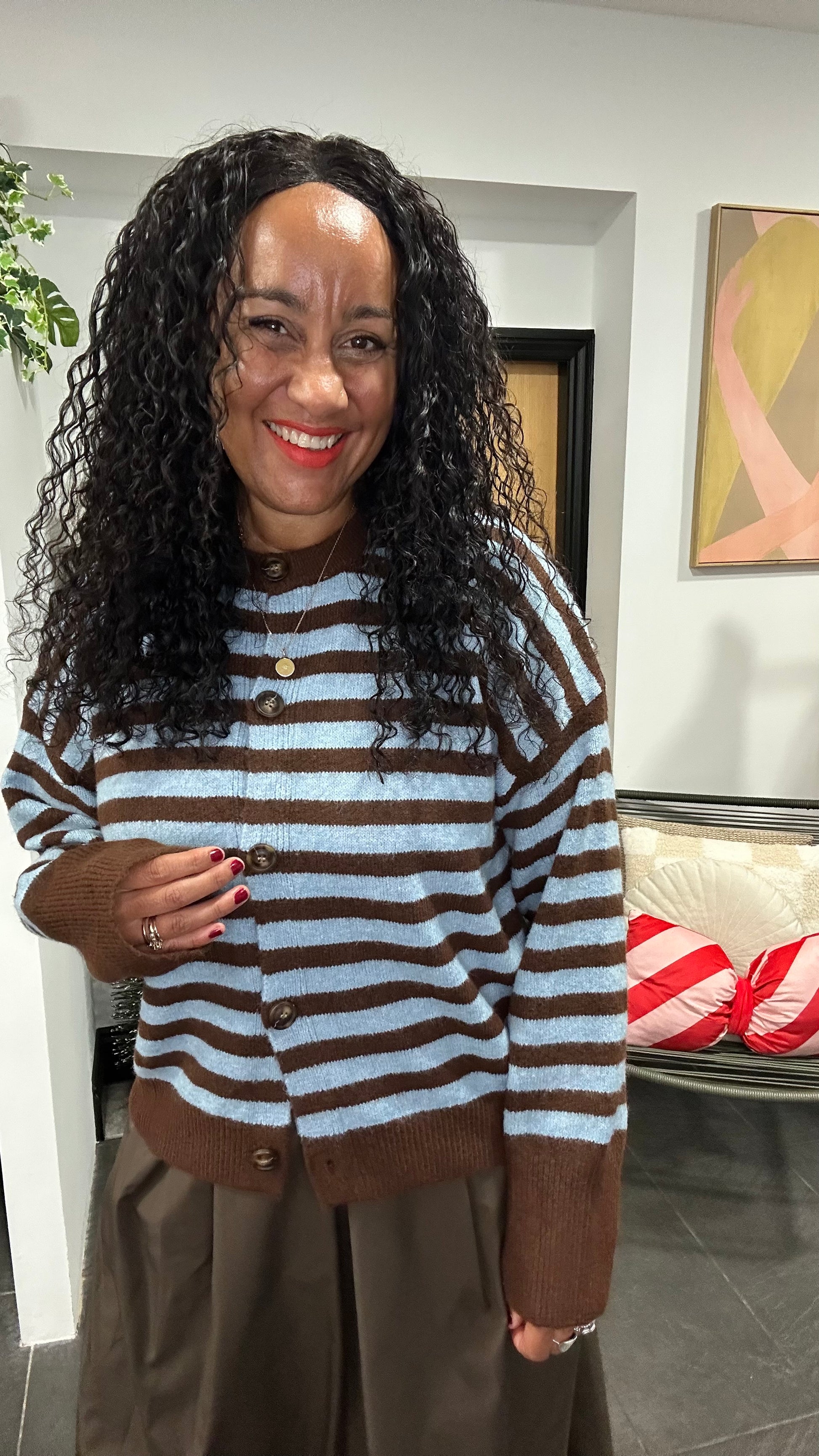 OWEN STRIPED CARDIGAN BLUE & BROWN *New