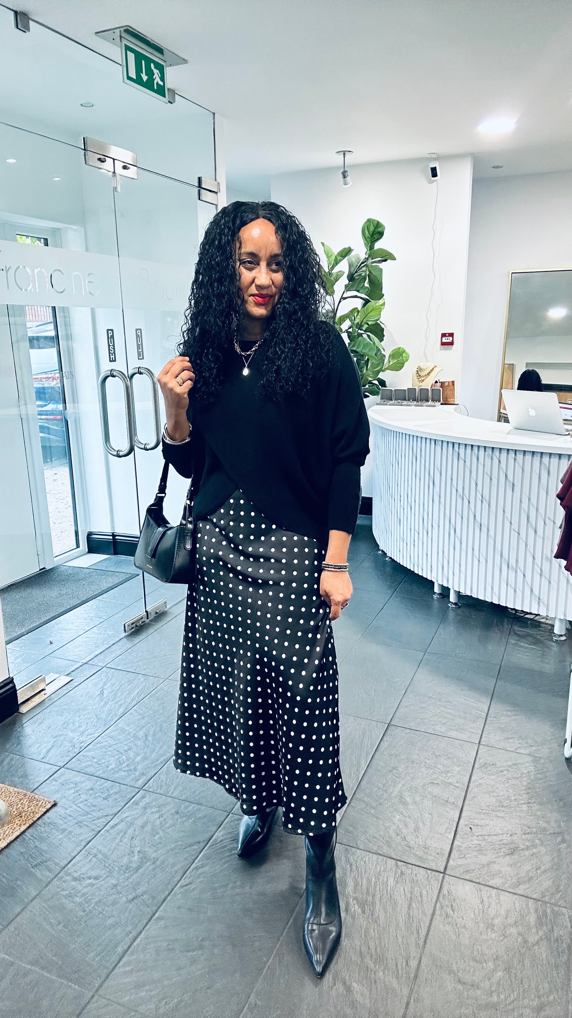 POLKA DOT SATIN FEEL PRINT SKIRT BLACK *New