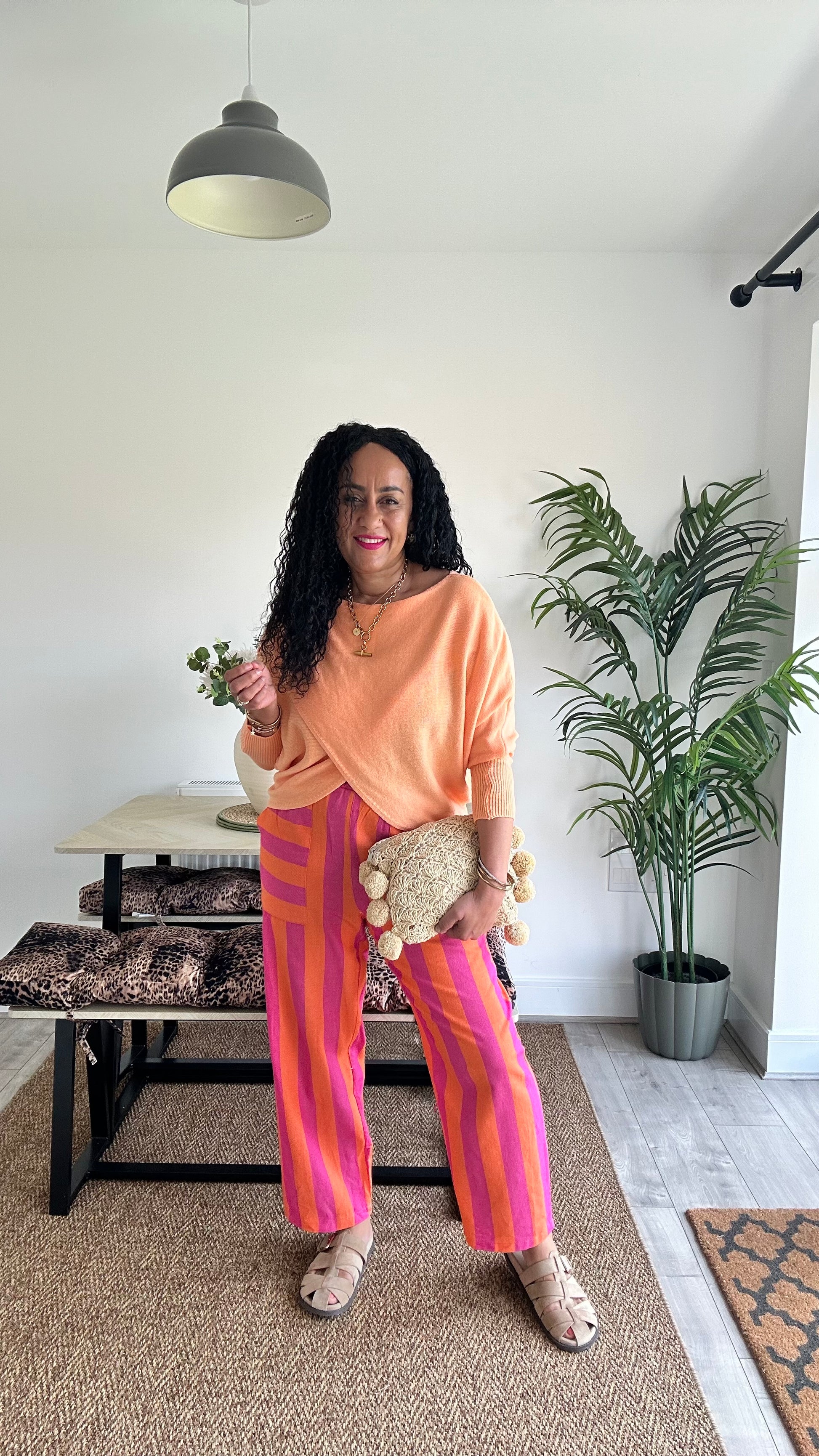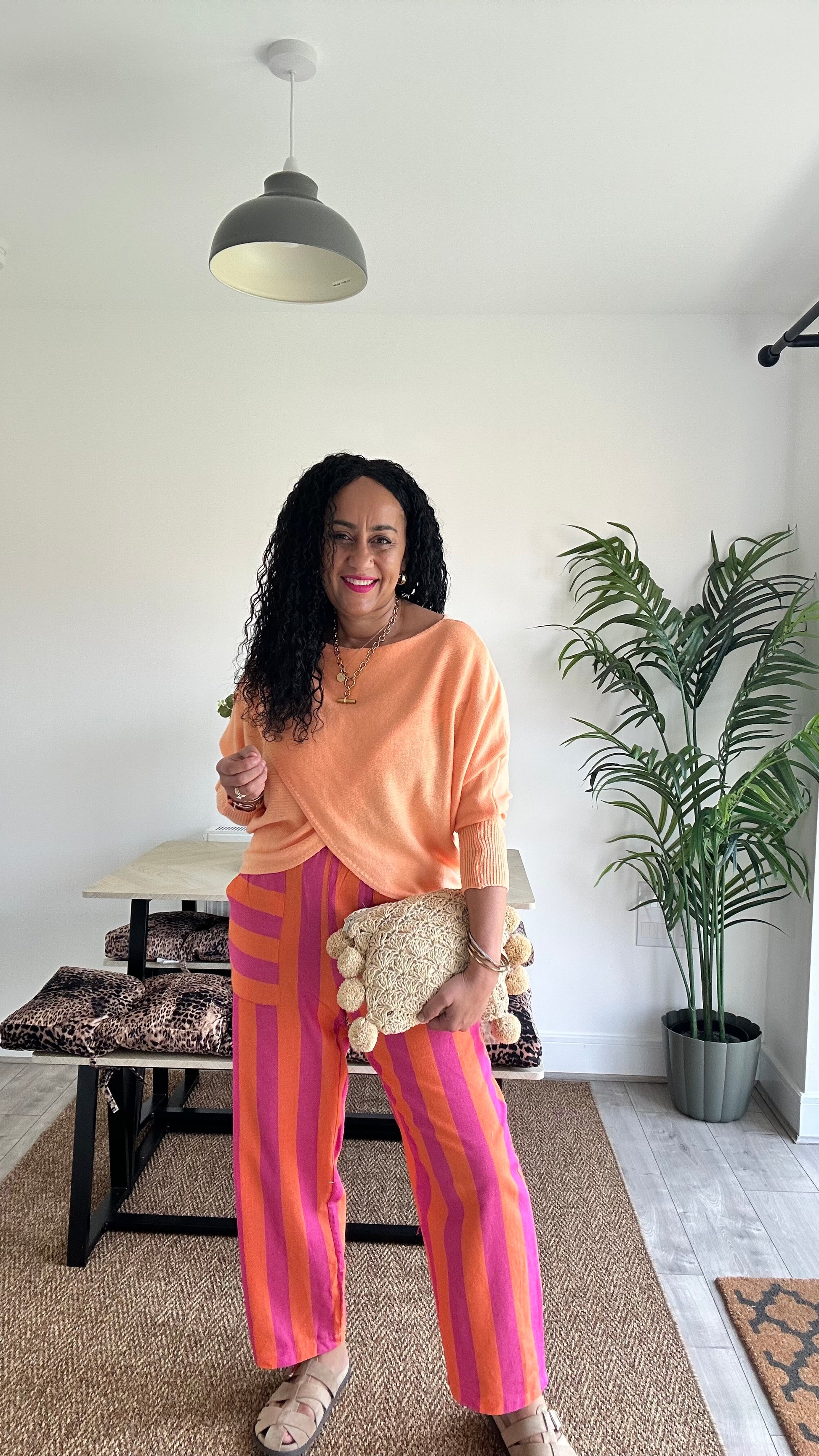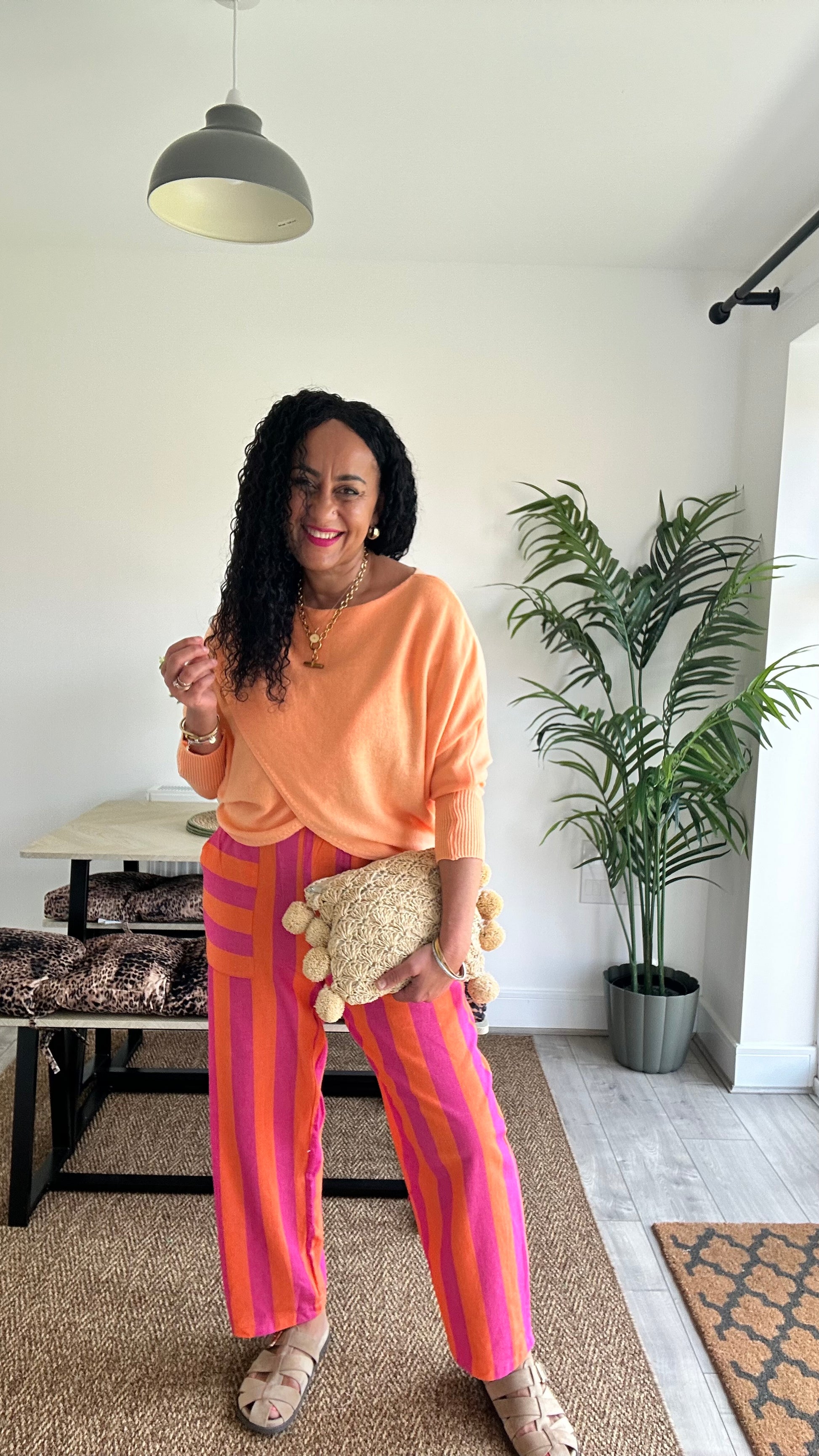 RETRO STRIPE BARREL LEG TROUSERS PINK & ORANGE 🩷🍊 *New