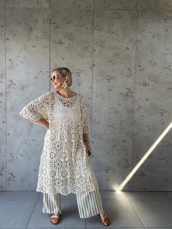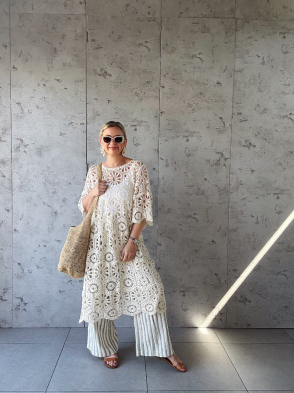 CLEO CROCHET SHORT SLEEVED DRESS IVORY *New