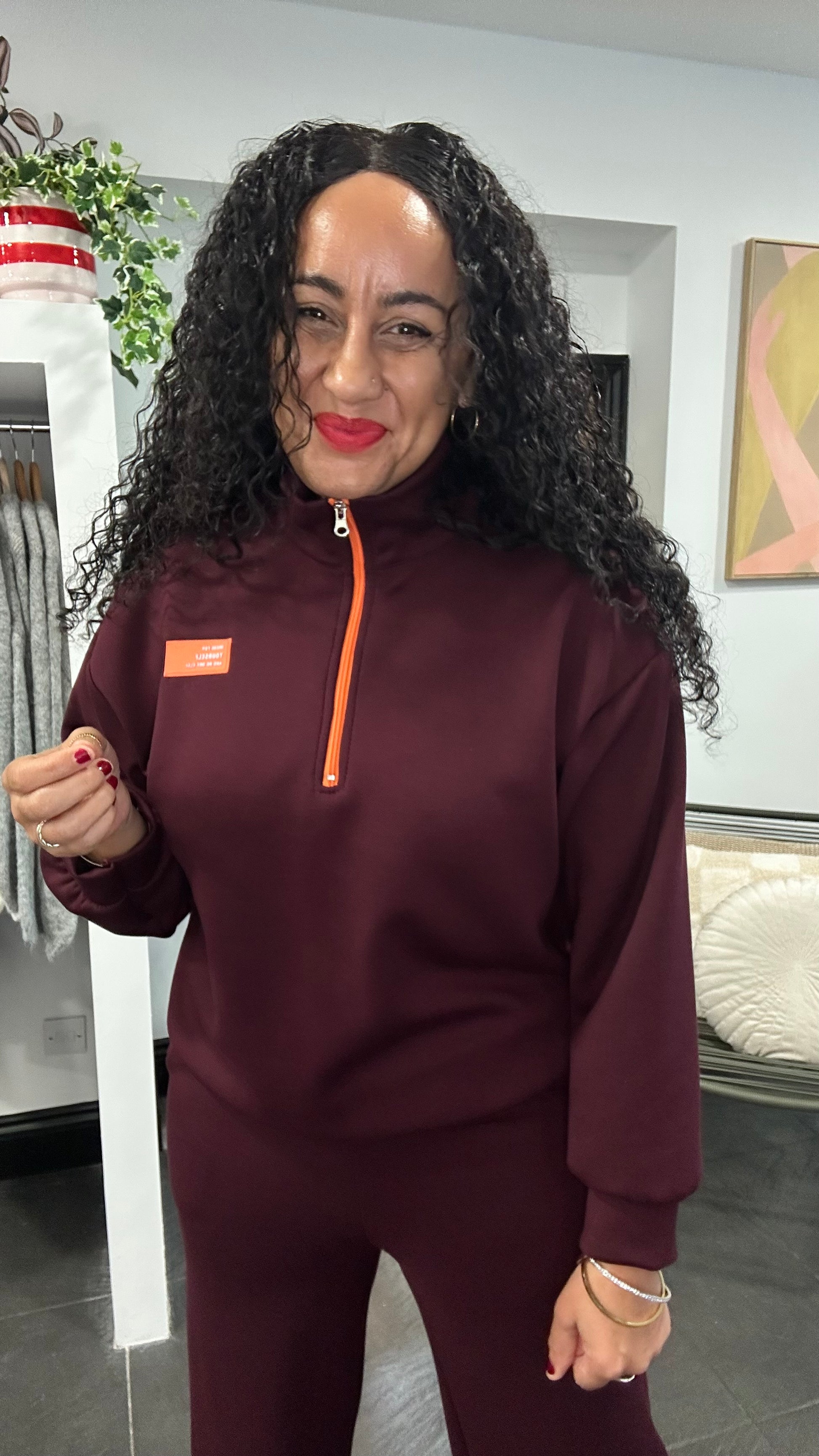 SIENNA CONTRAST ZIP & TIE LOUNGEWEAR BURGUNDY *New