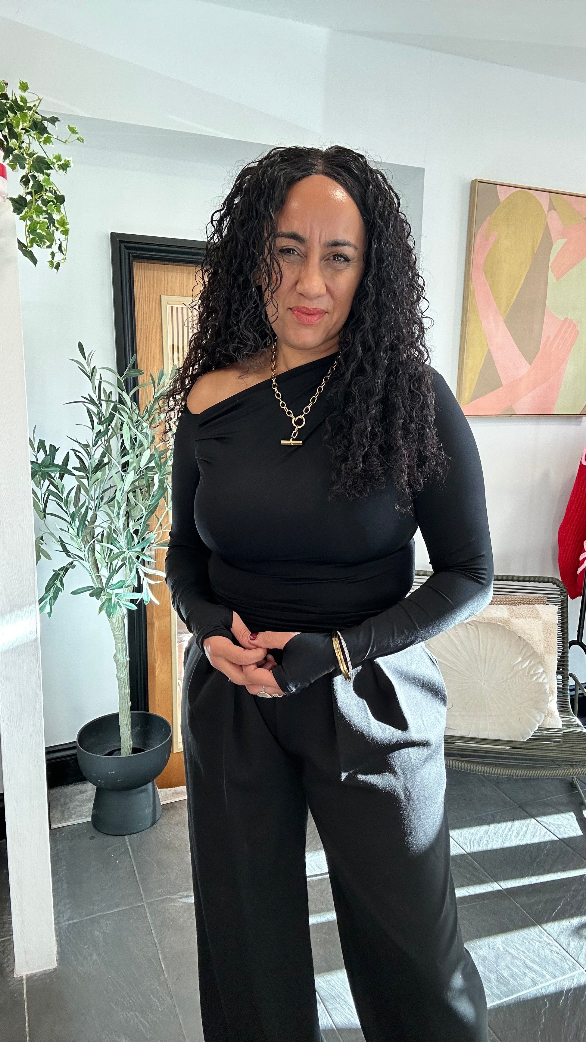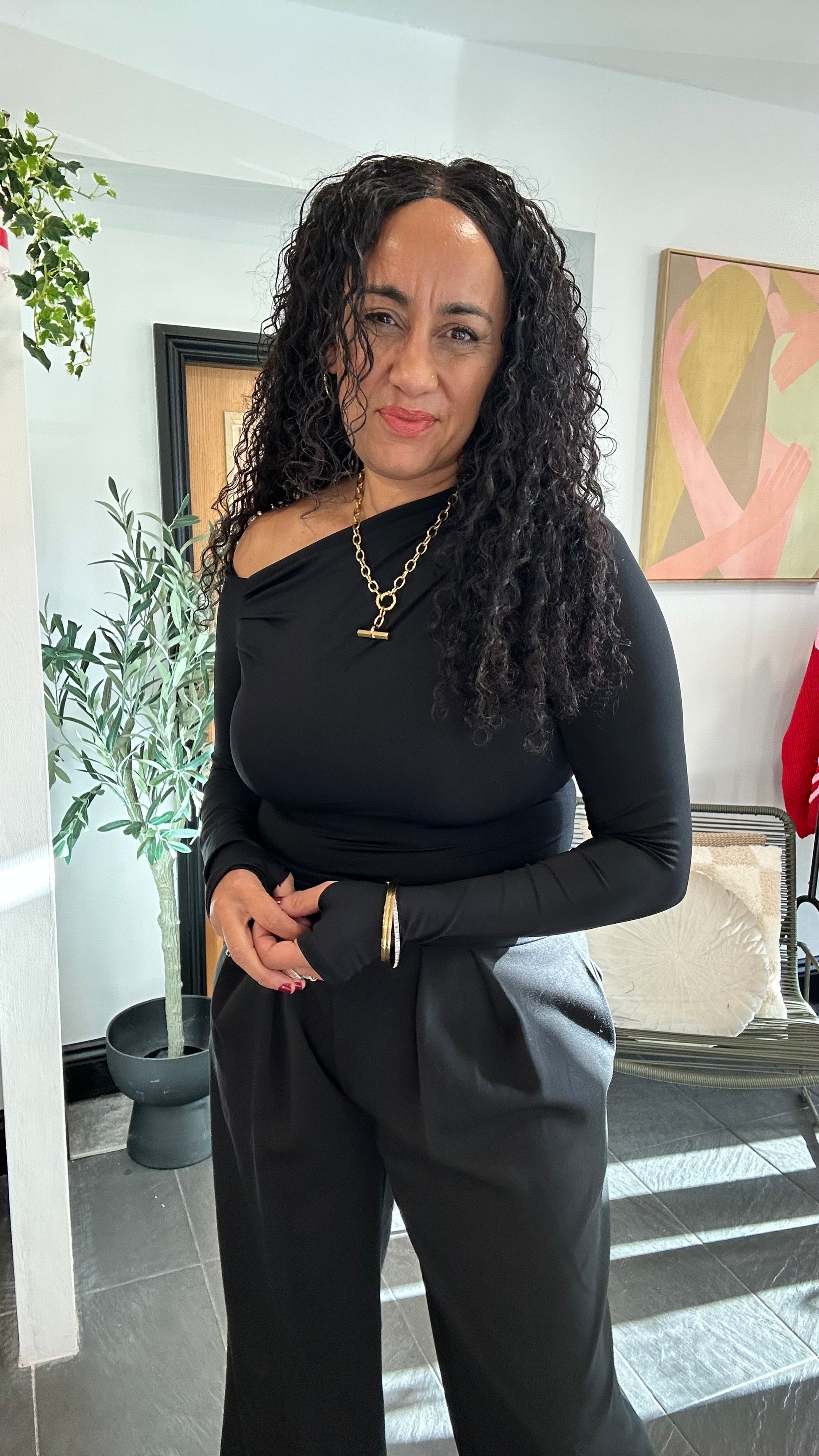 SLEEK ASYMMETRICAL FITTED TOP BLACK *New