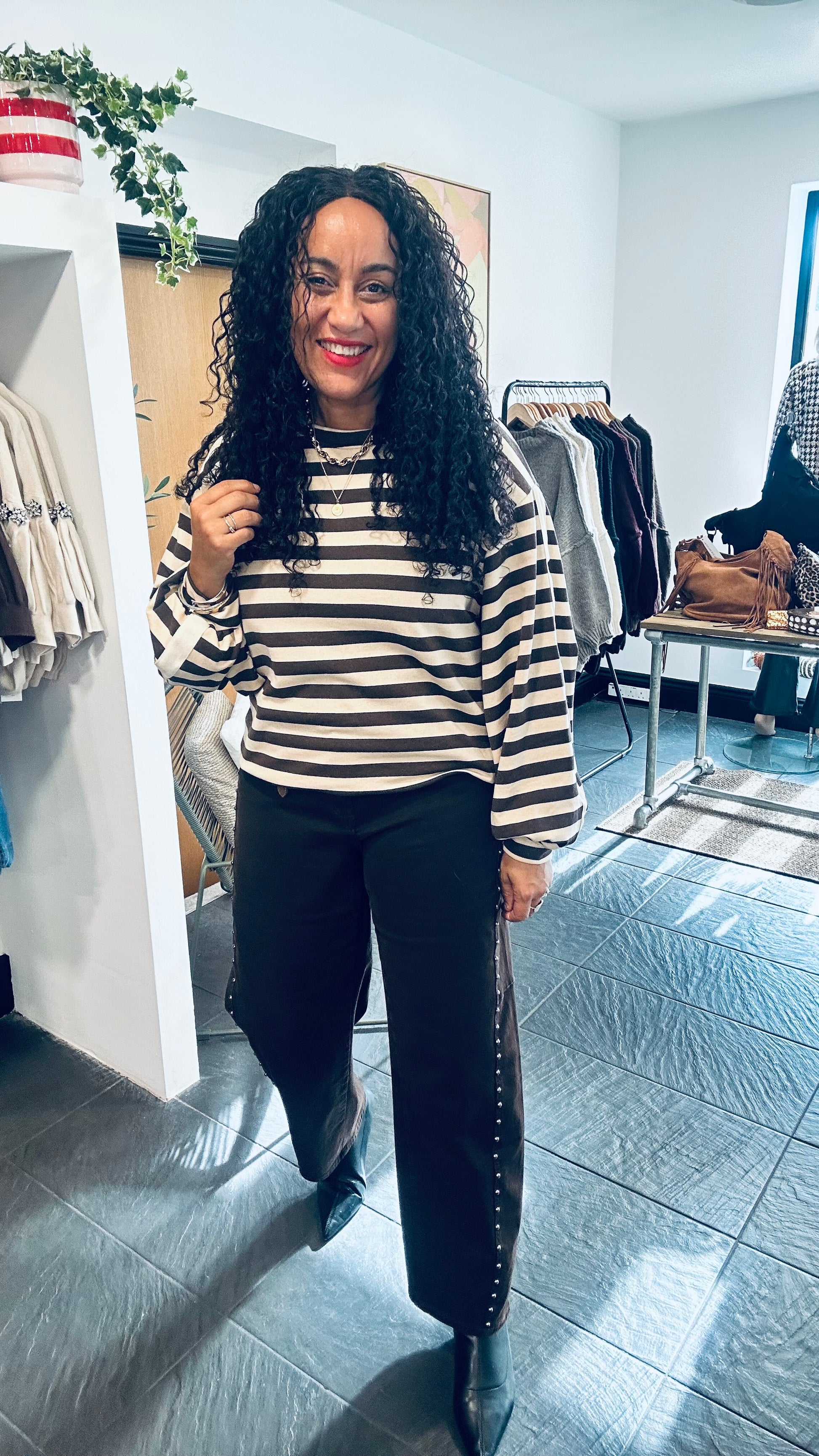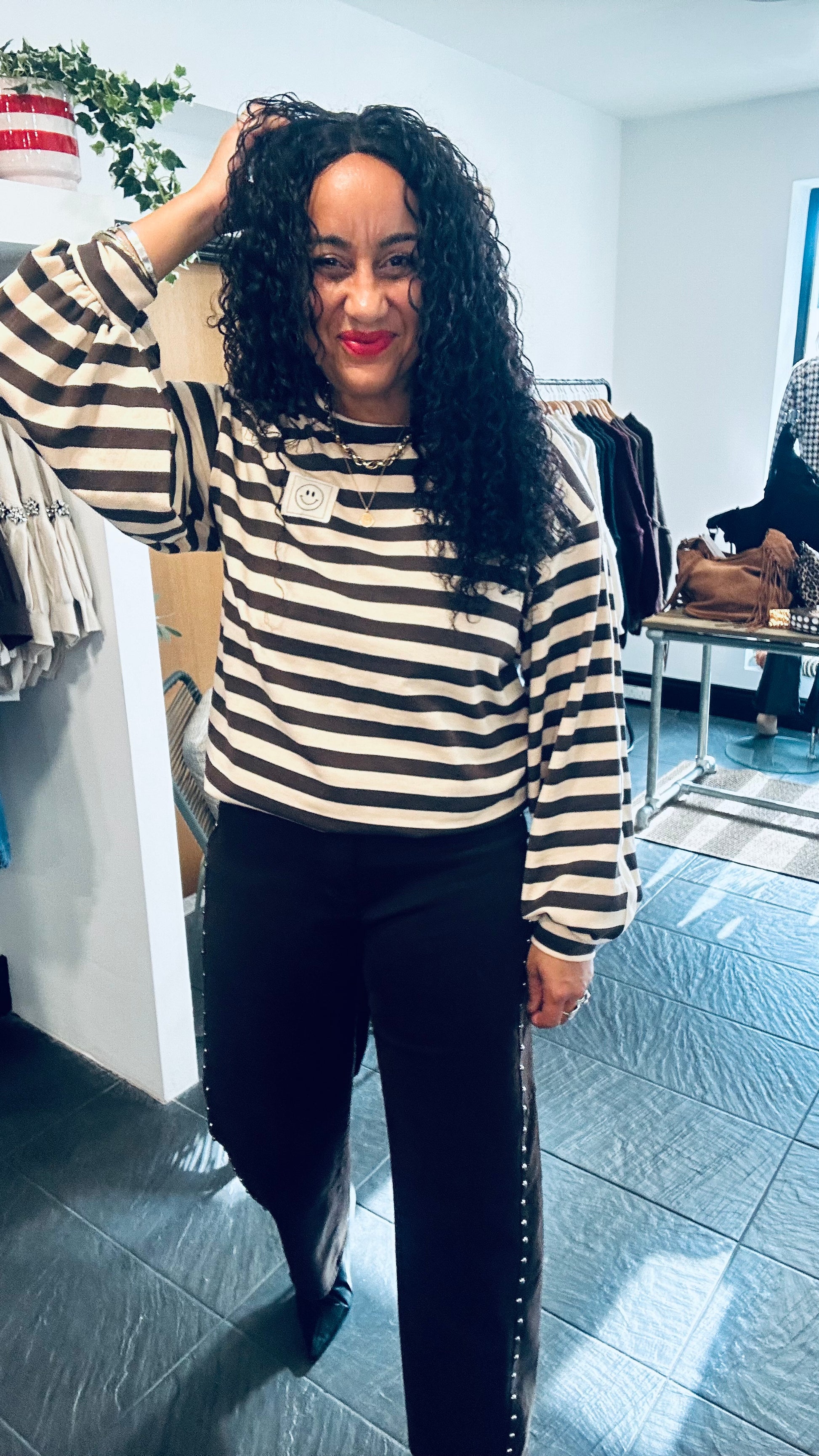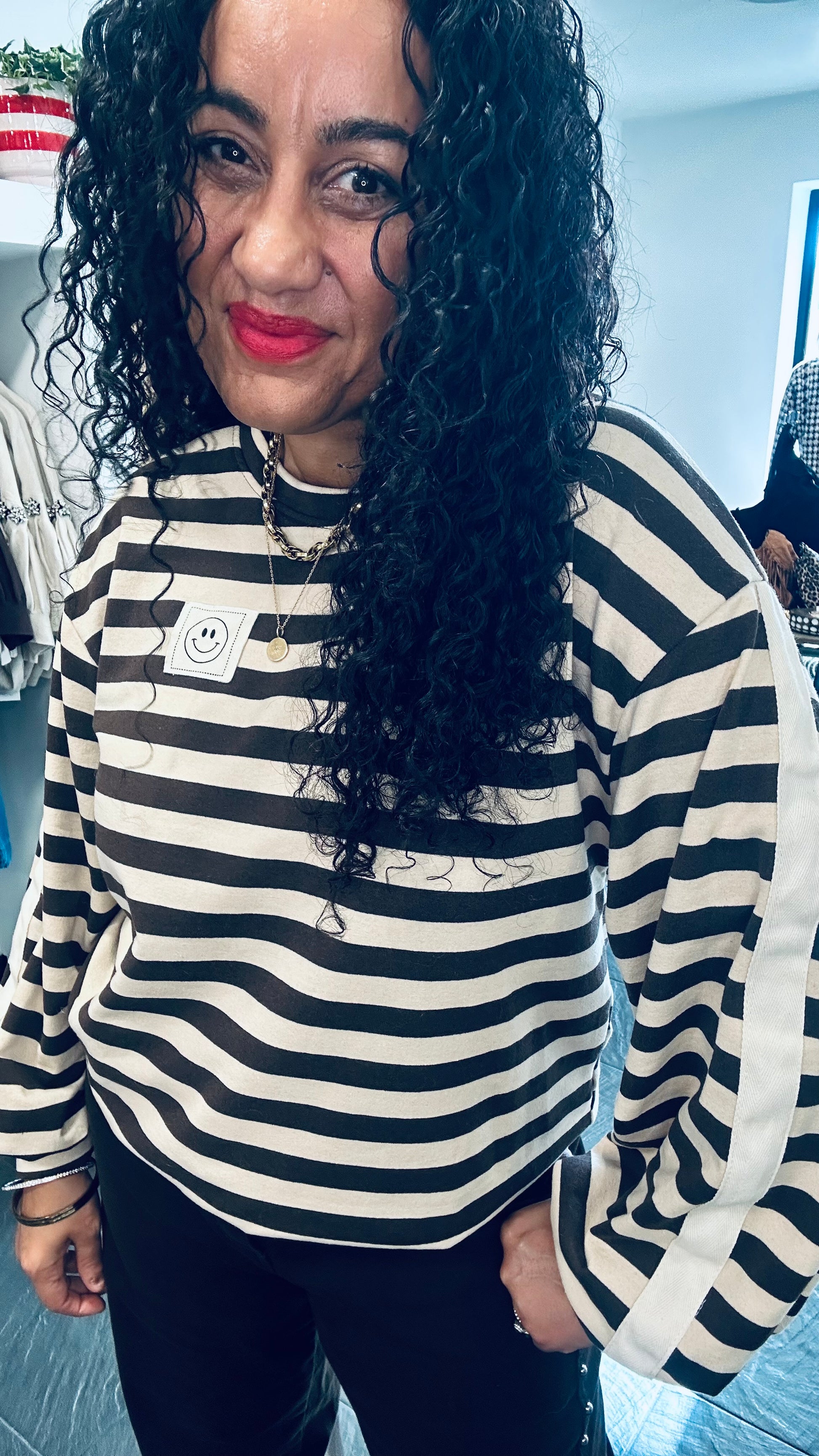SMILEY PATCH STRIPE TOP BROWN & BEIGE *New