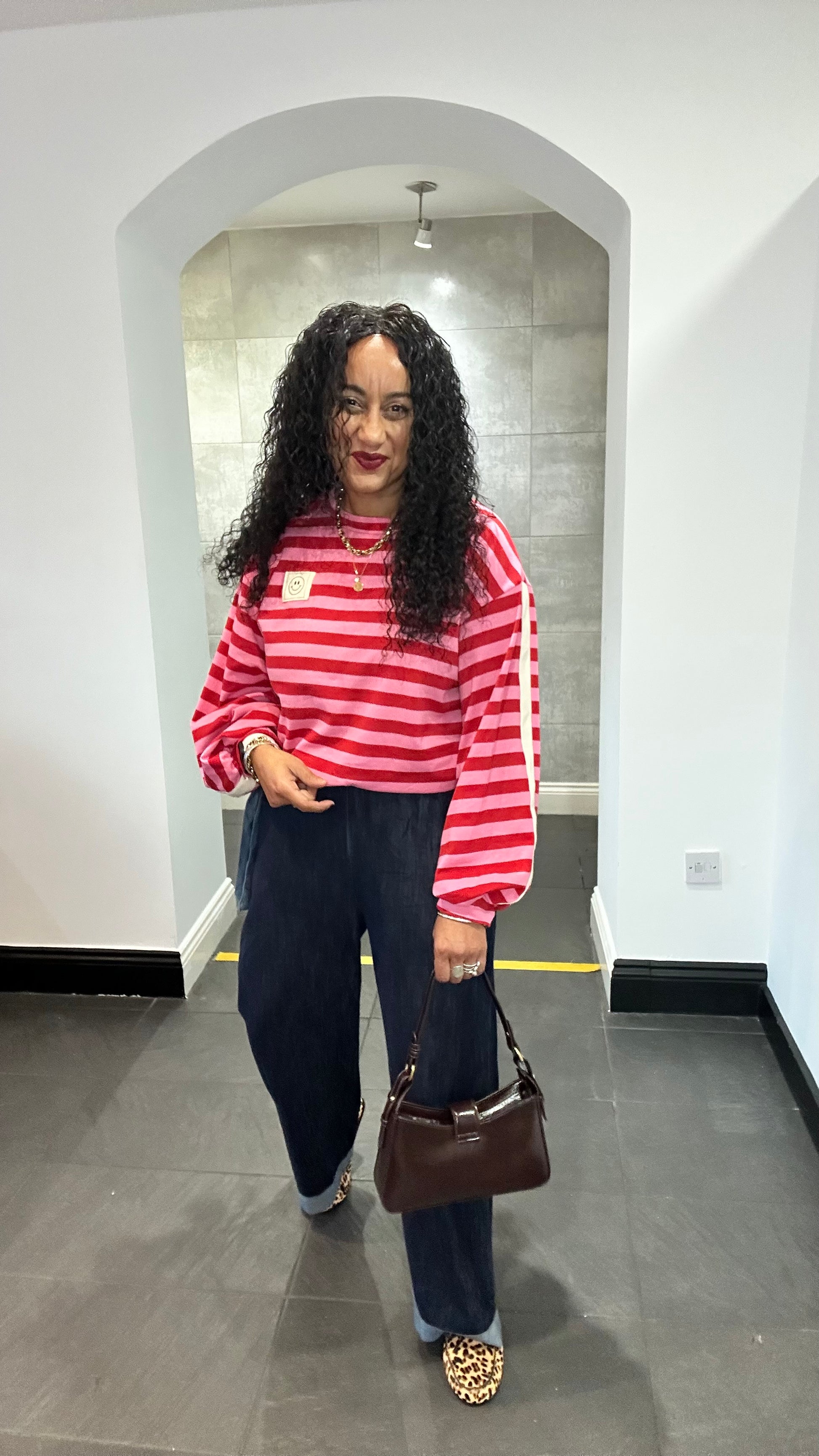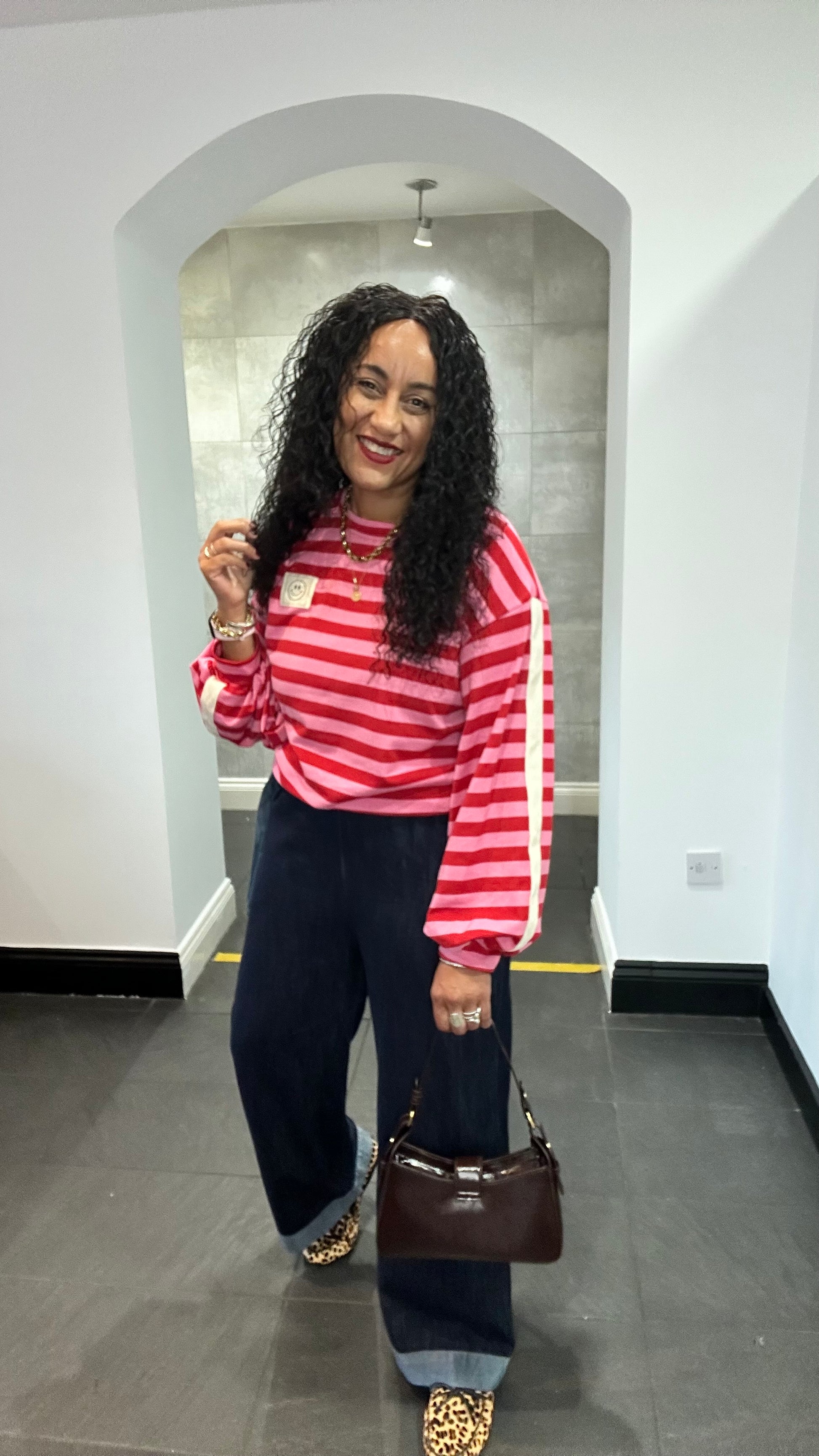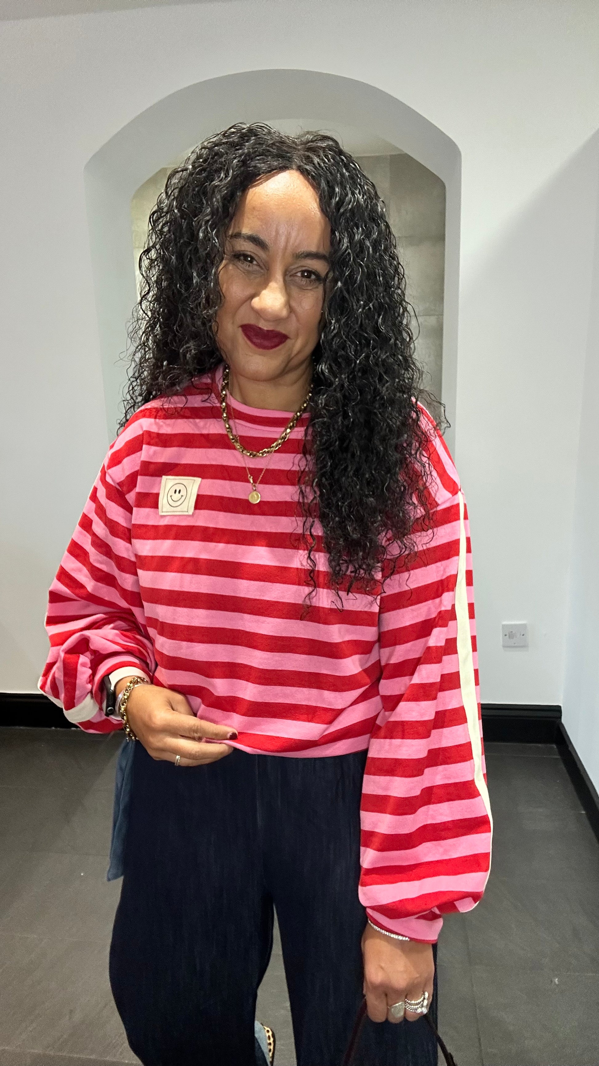 SMILEY PATCH STRIPE TOP RED & PINK *New