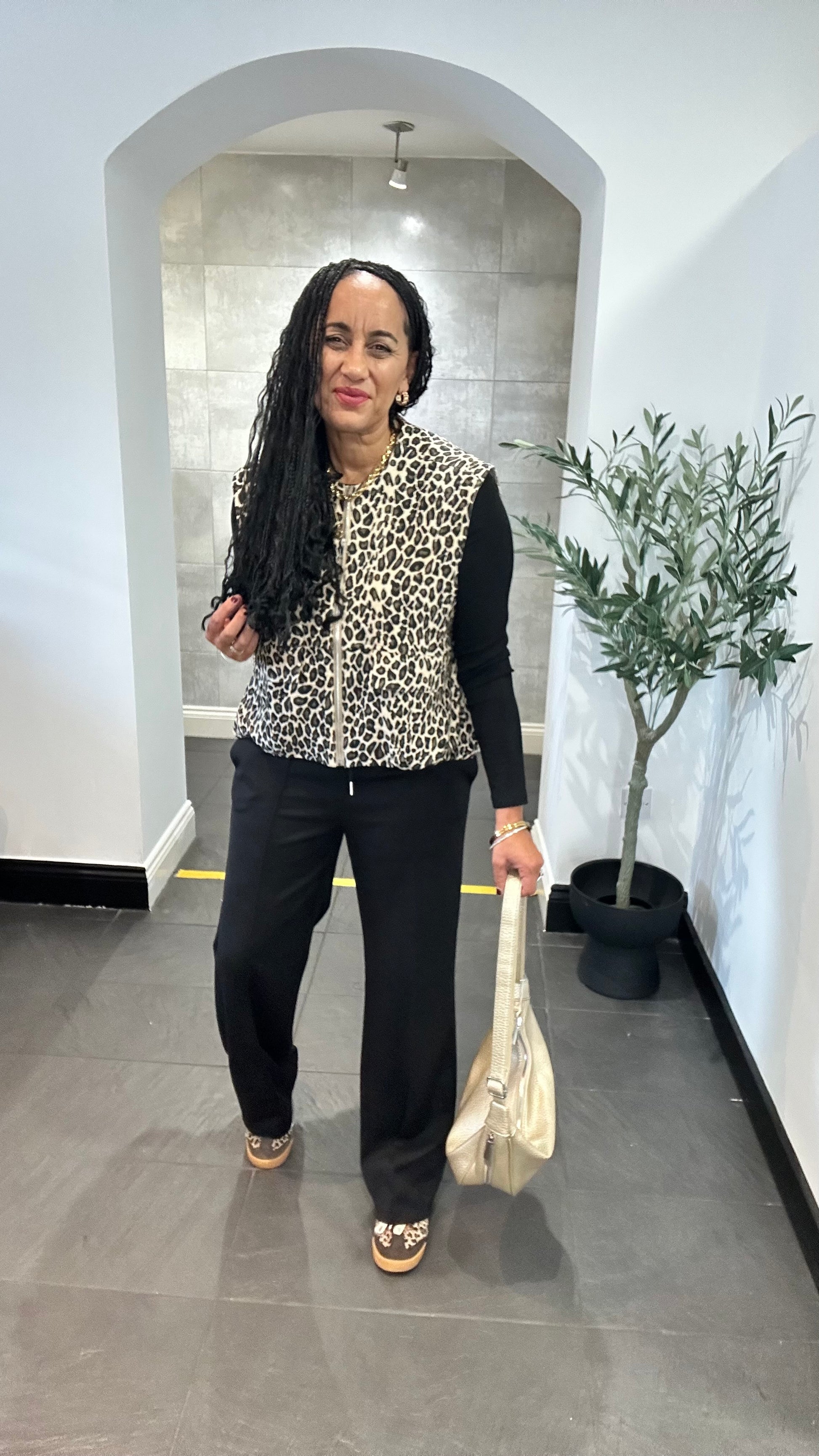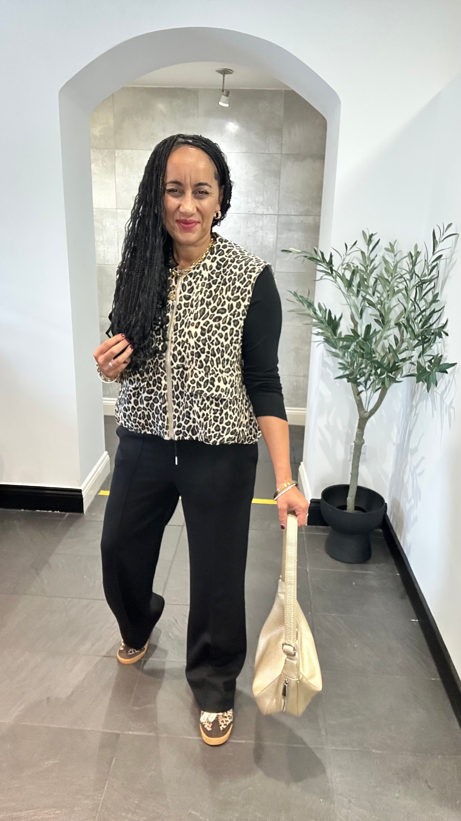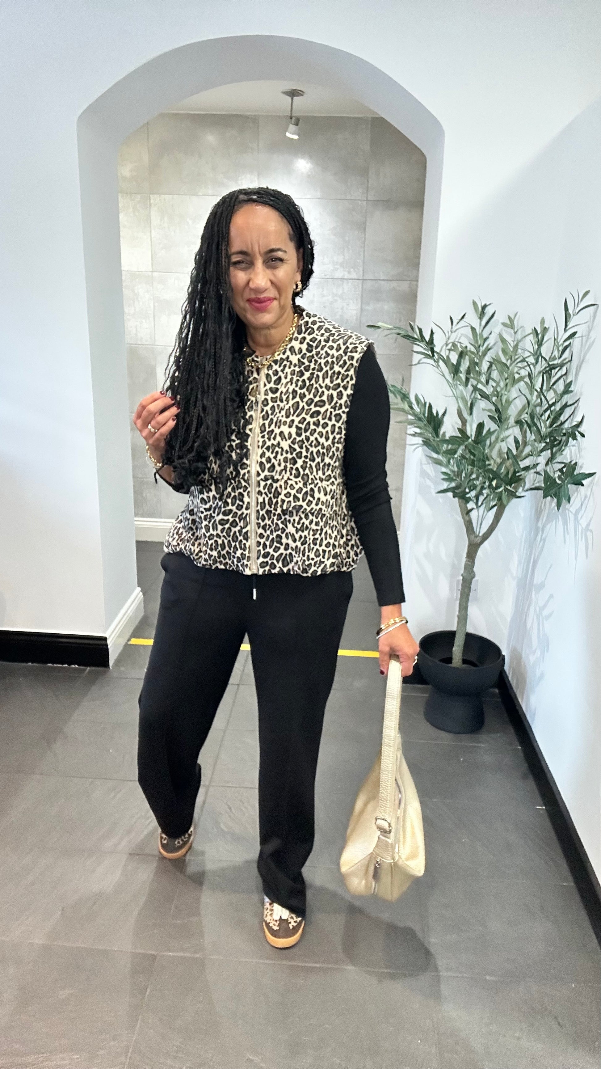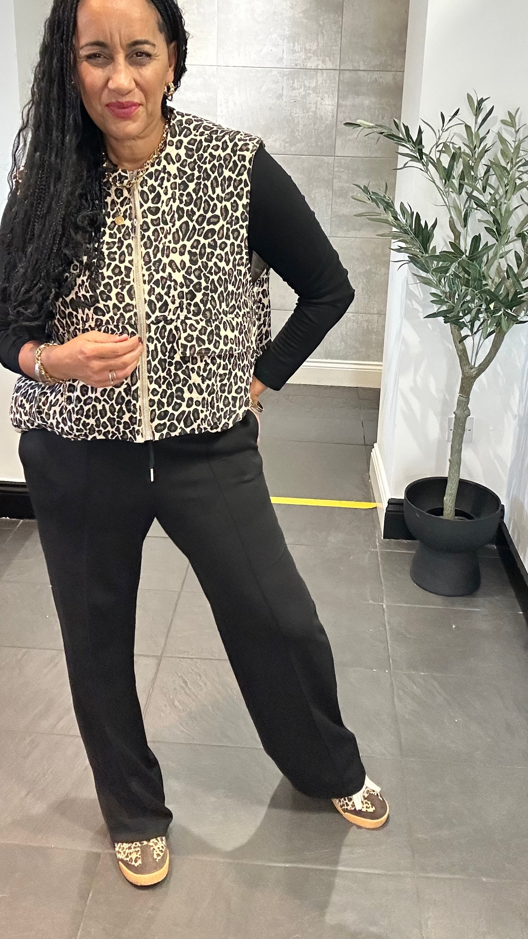 Tailored Ponte joggers, combining the comfort of loungewear with the polish of smart trousers.