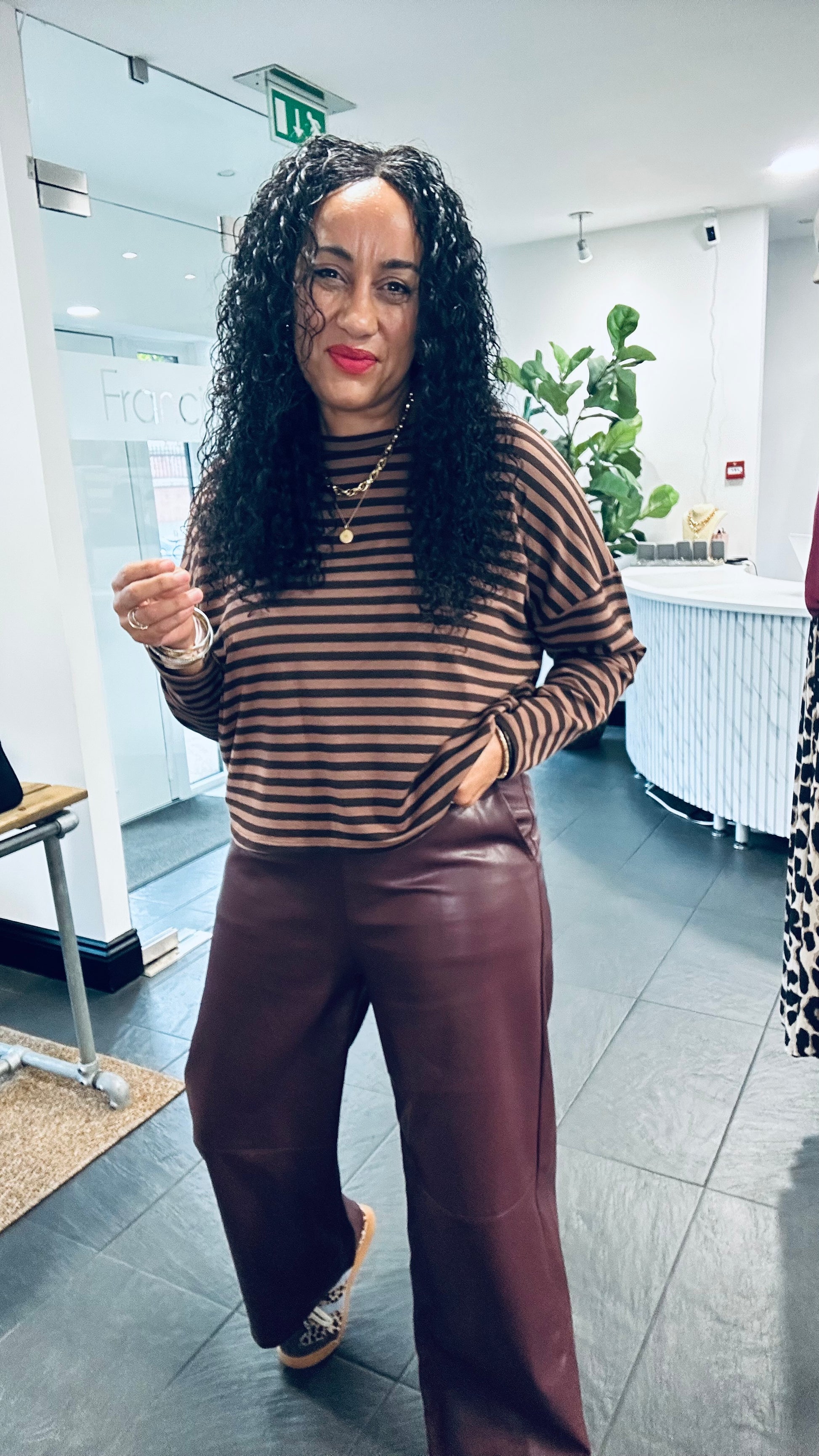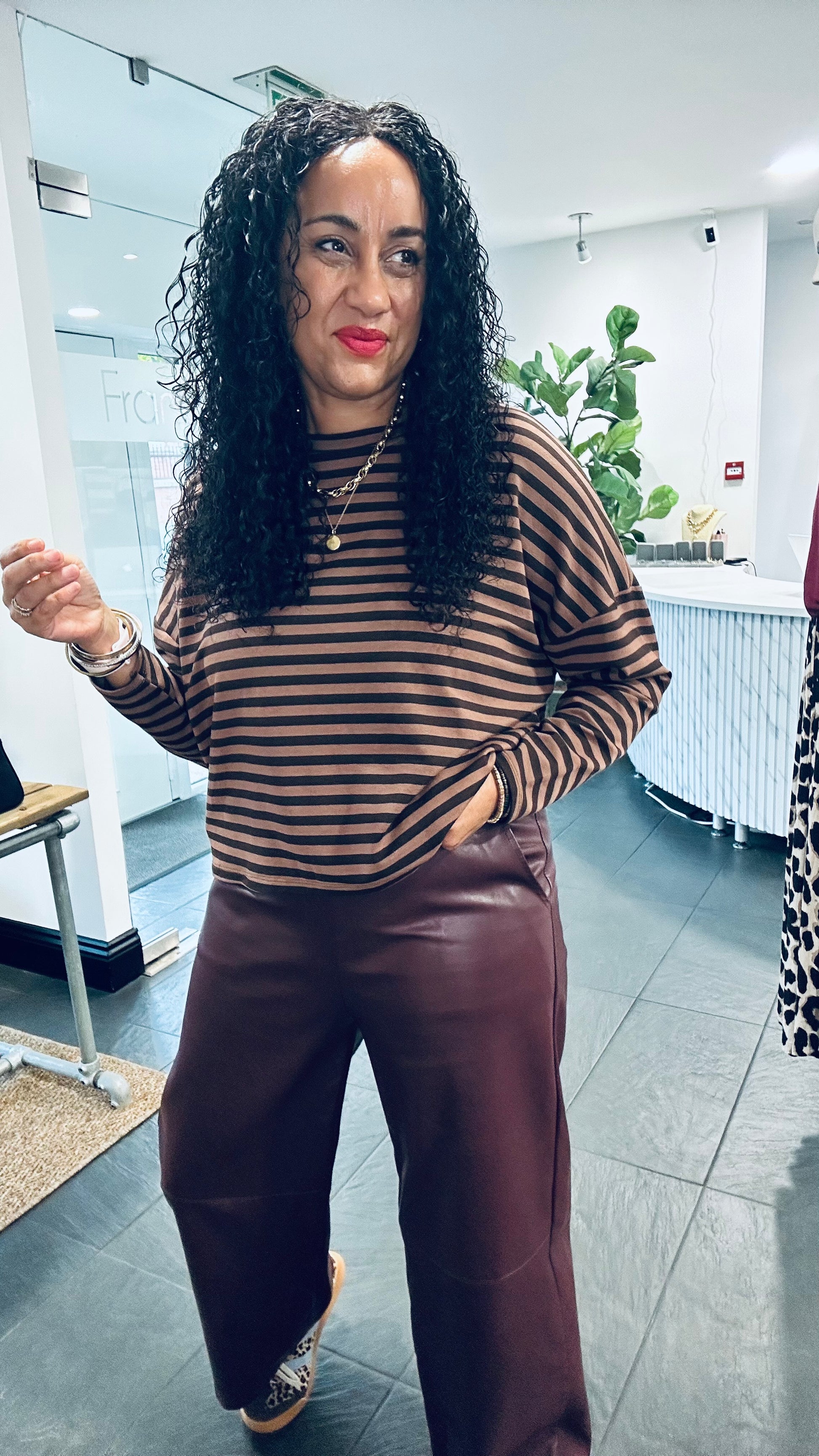 STRIPE LONG SLEEVED JERSEY TOP BROWN *New