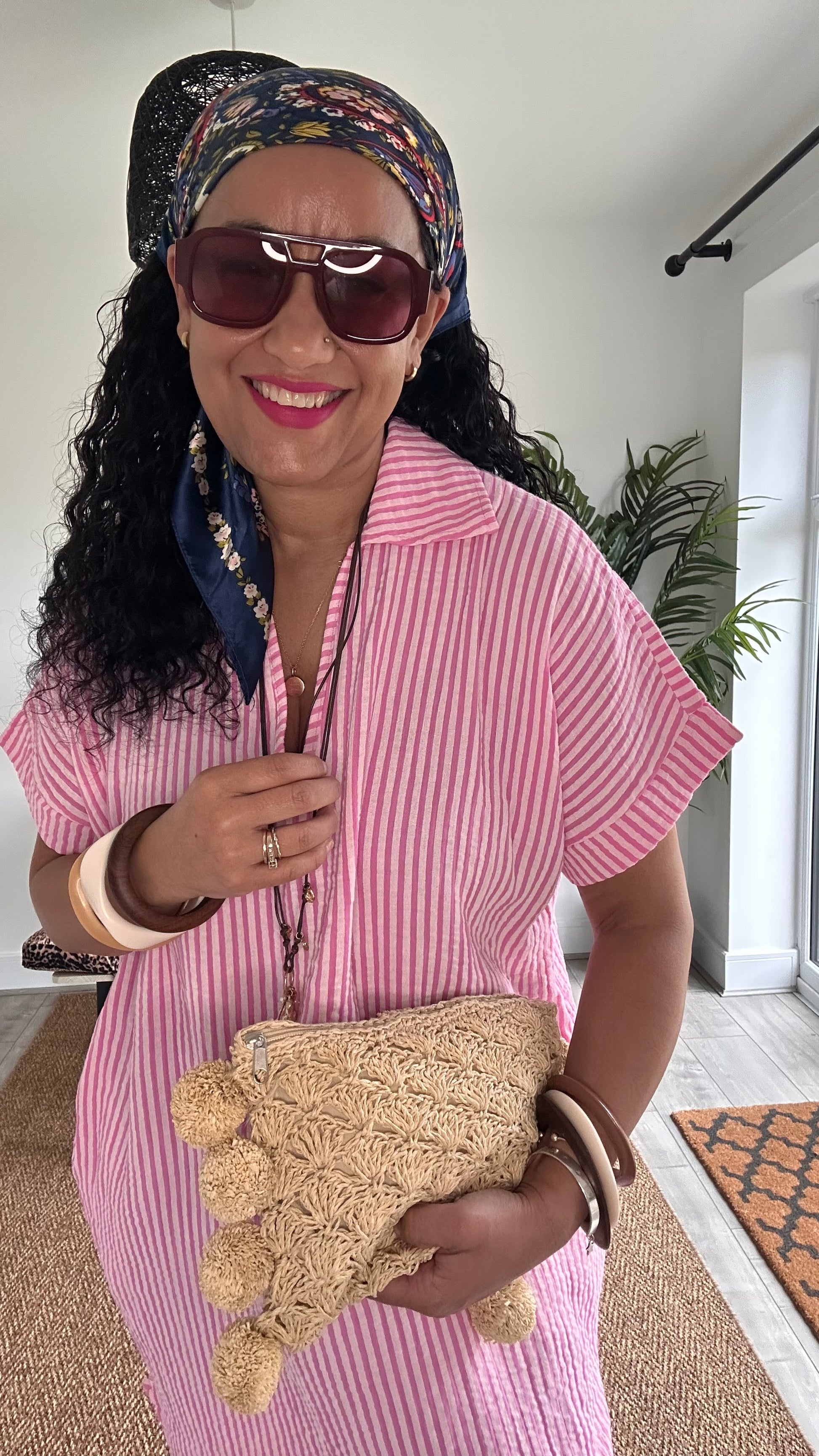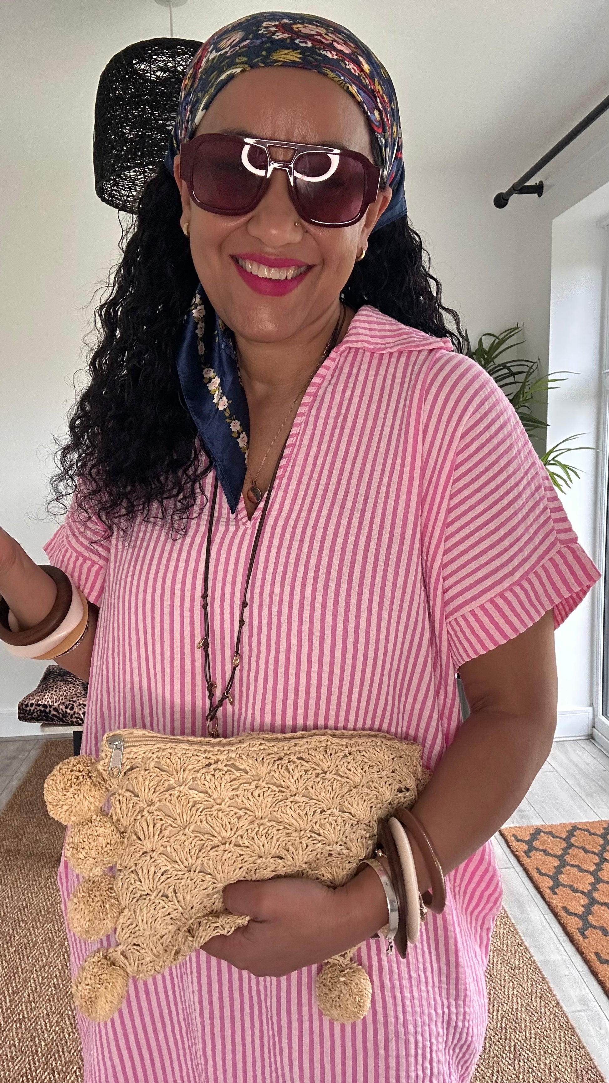 PRE ORDER TAYO STRIPED TUNIC SHIRT DRESS PINK *New