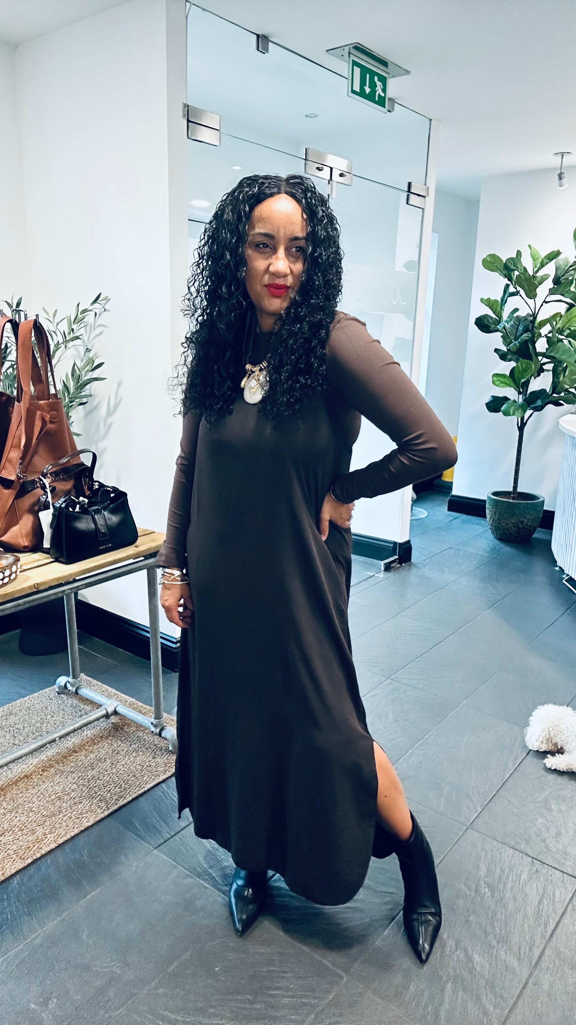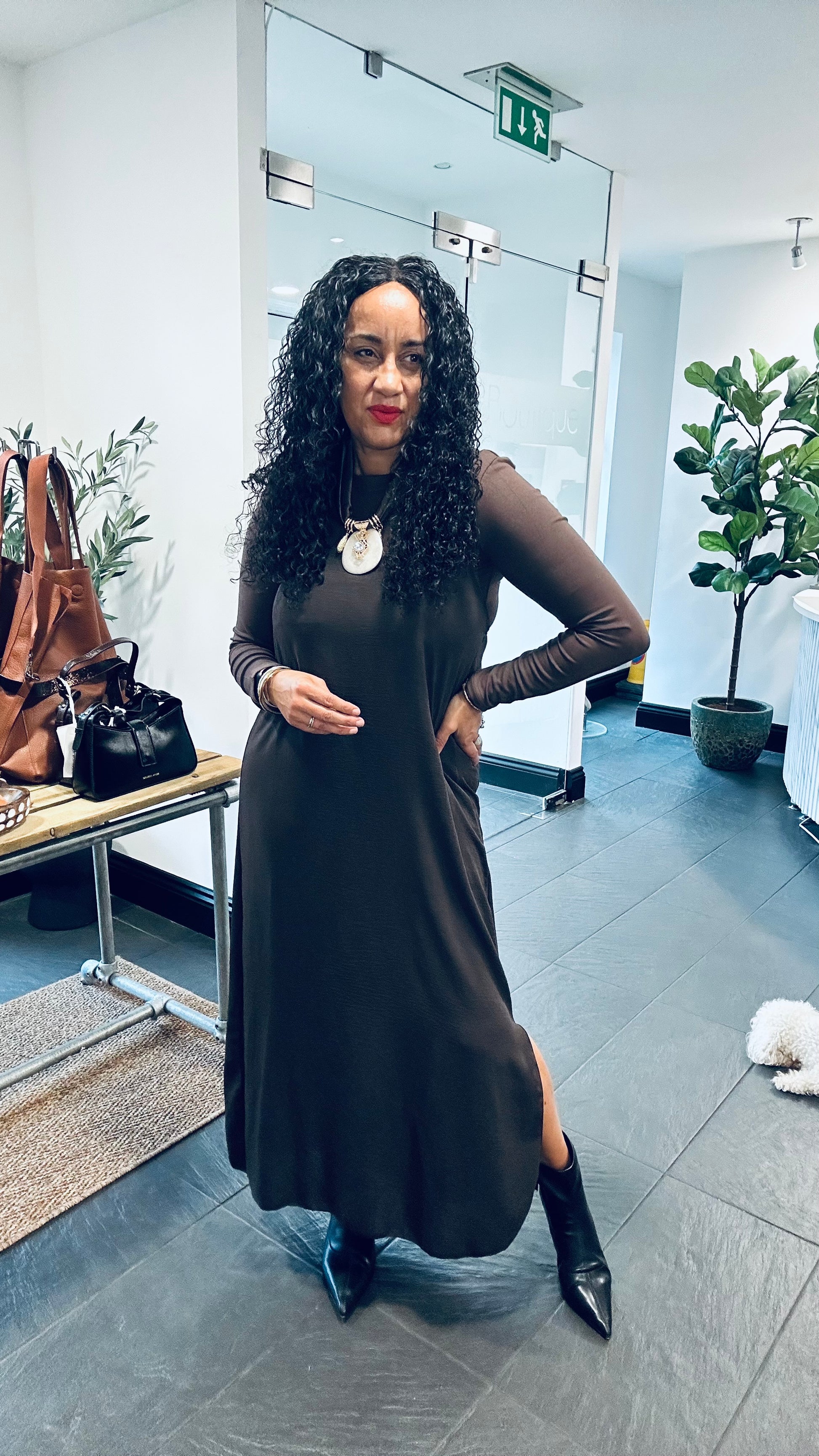 Dimensions Pit to Pit 50cm, Shoulder to Hem 122cm, Fran model is a size 14, 5ft 6