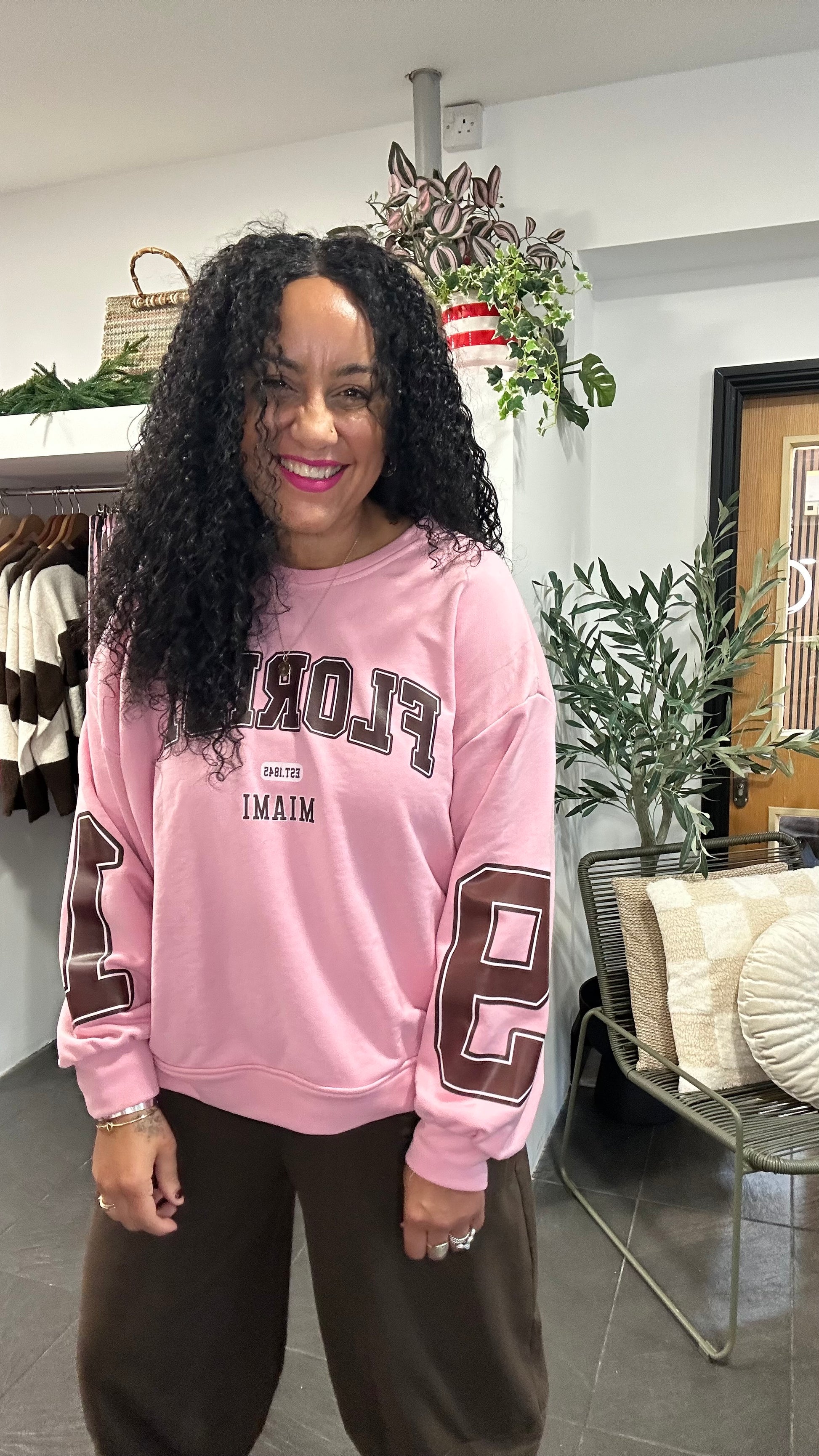 FLORIDA VARSITY SLOGAN SWEATSHIRT PINK *New