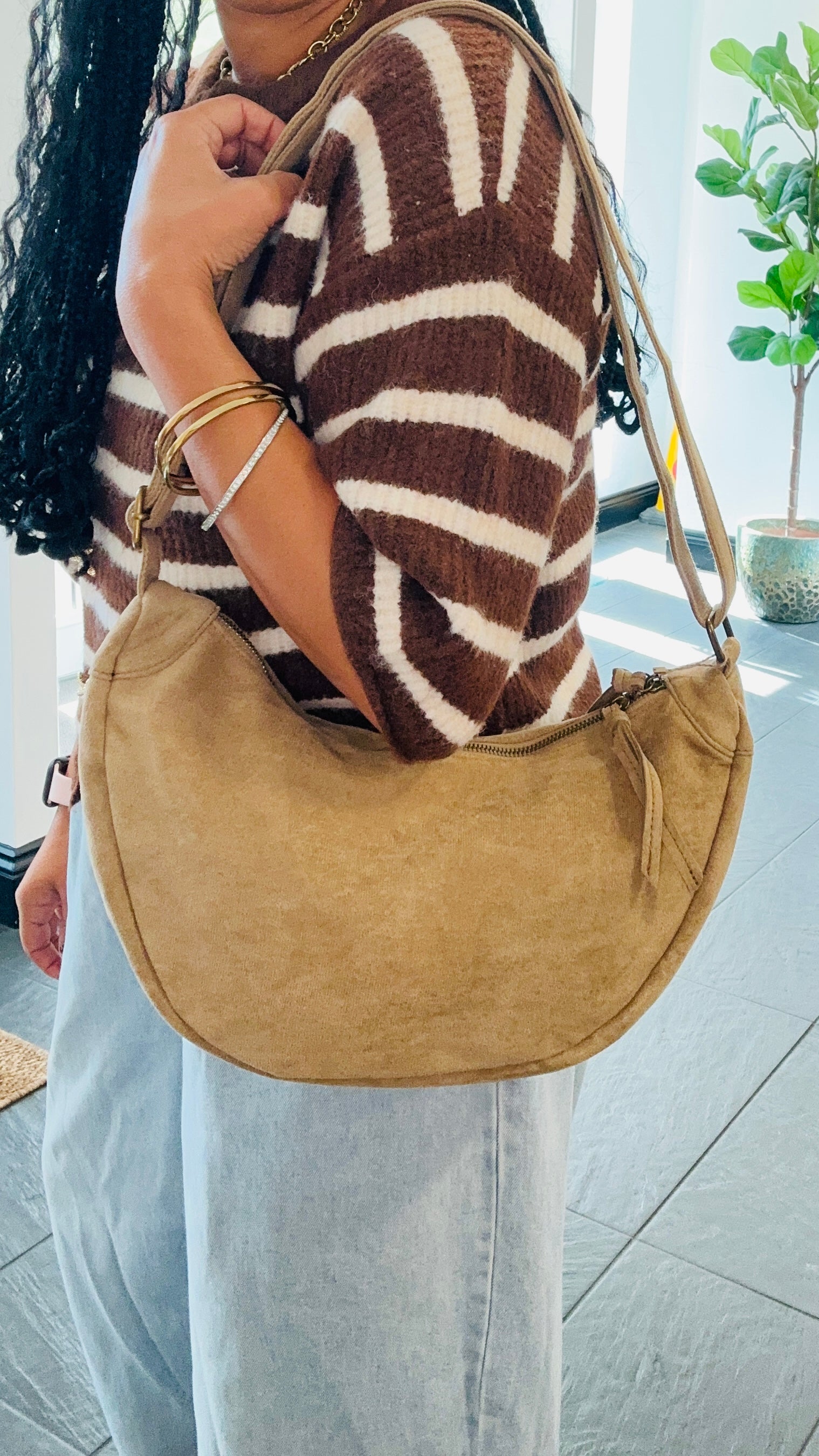 VELVET HALF MOON CROSS BODY BAG BEIGE *New