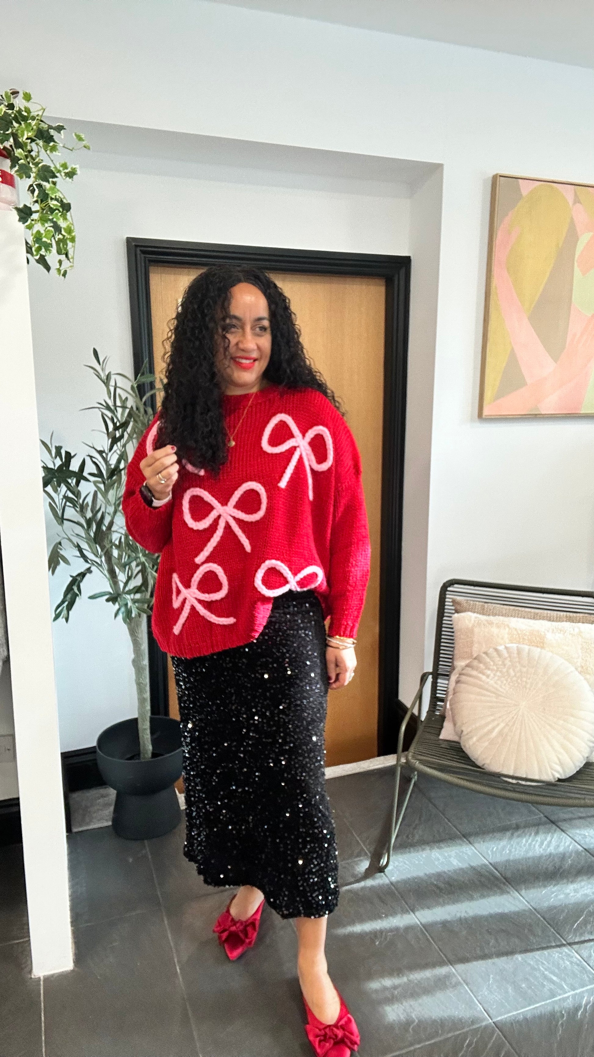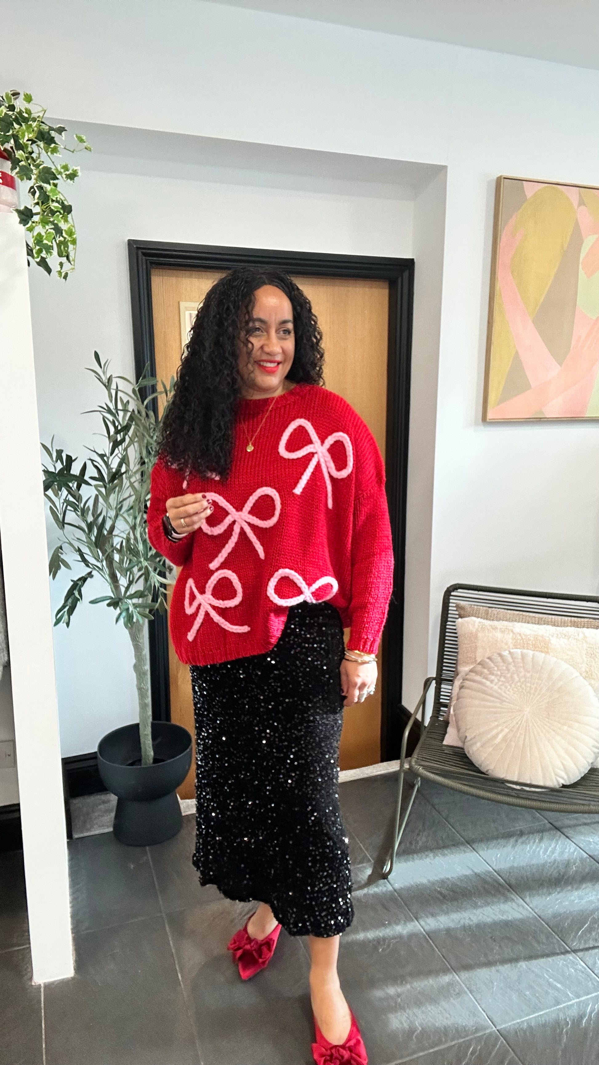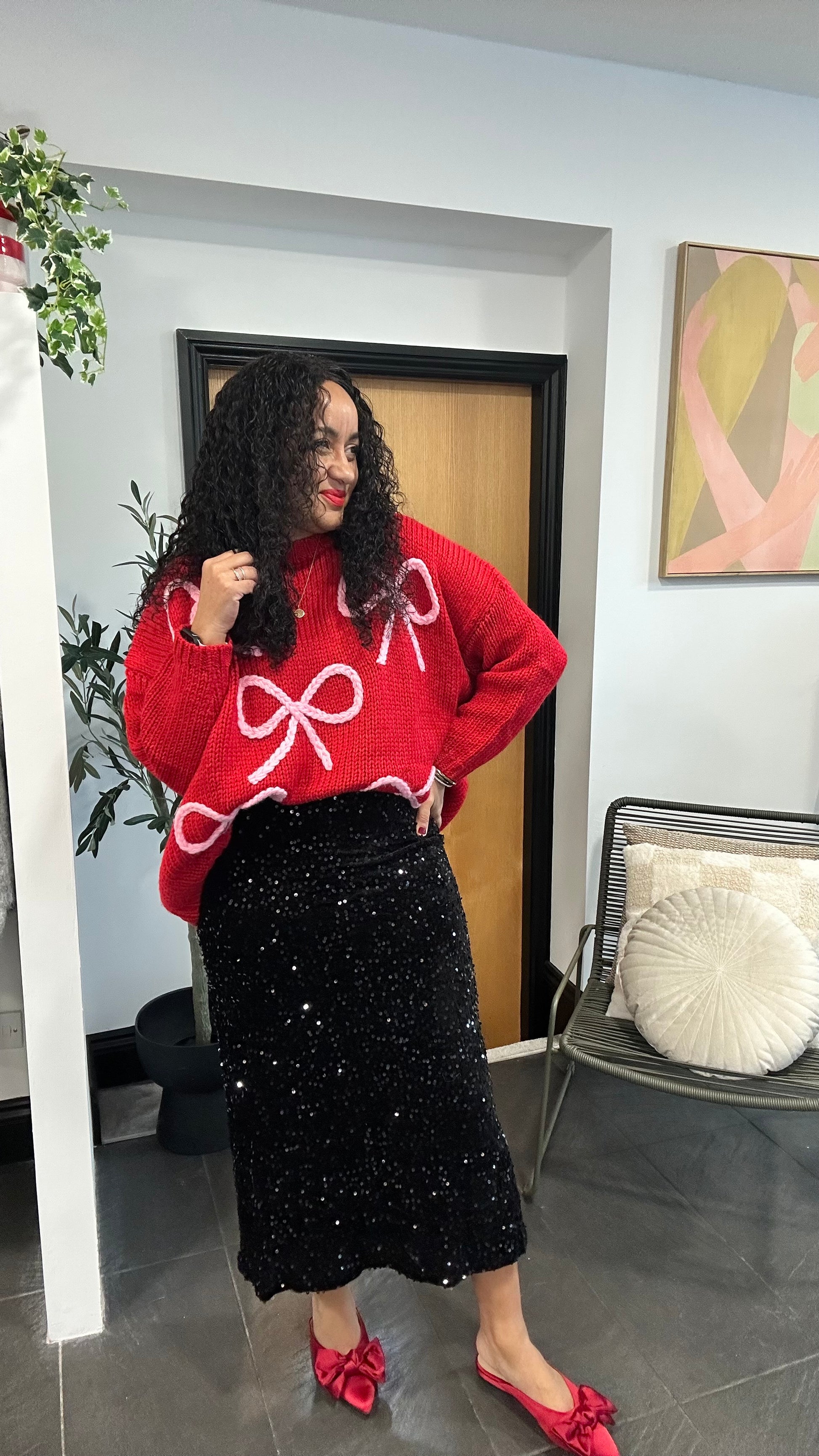 SARA VELVET SEQUIN MIDI SKIRT BLACK *New